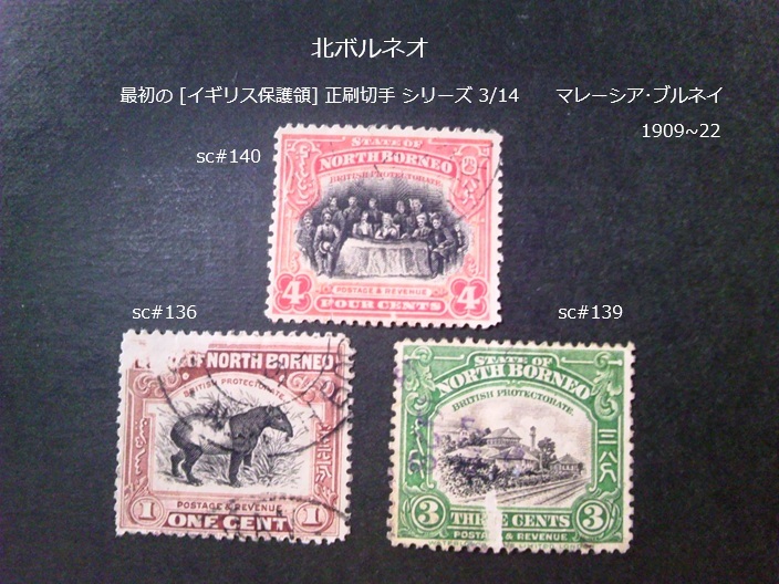 北ボルネオ 最初の[英・保護領]正刷s マレーシア他 1909~22 sc#136,9,140