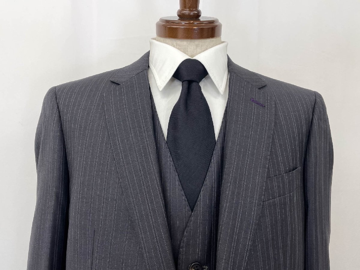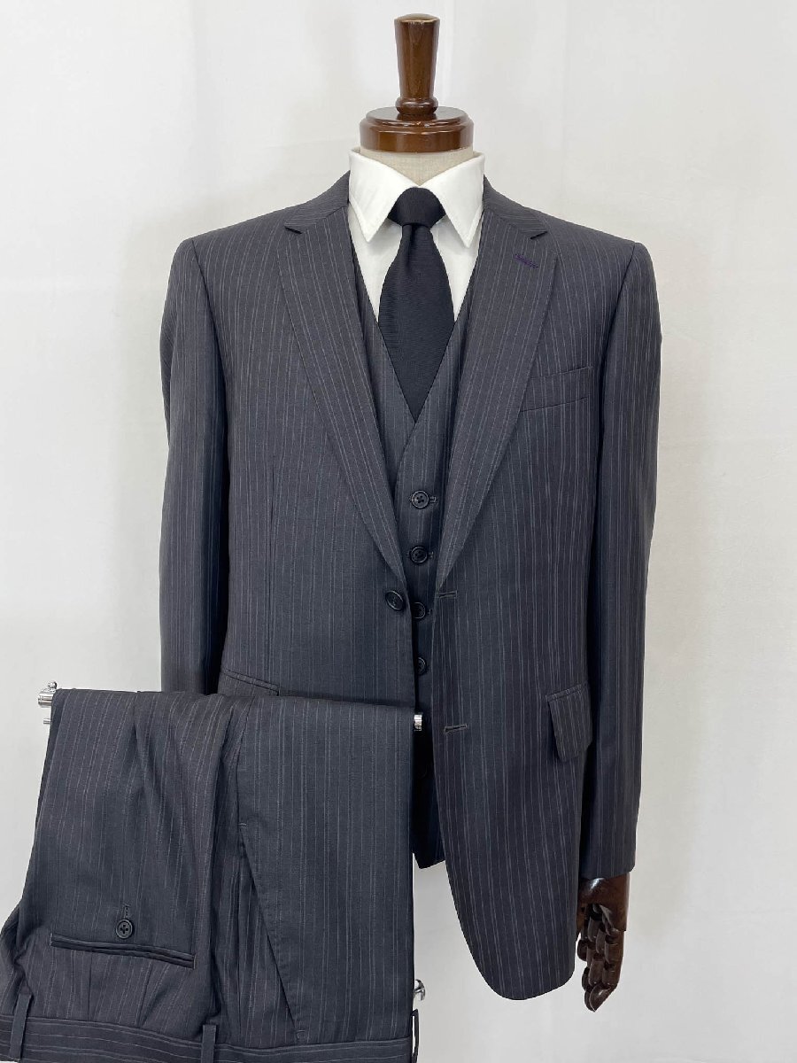 極美品【Paul Smith LONDON ポールスミスロンドン】MK.253010 MD.1439 絹混 2B ストライプ 3ピーススーツ (メンズ) M2/L2 灰系 ◇35RMS2597