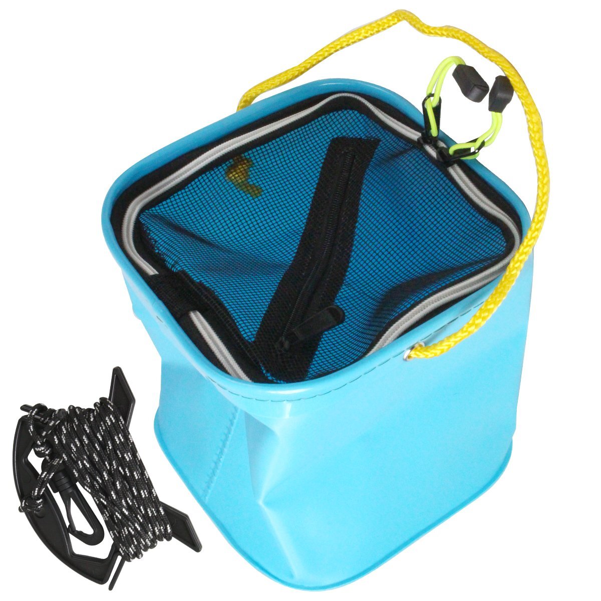 折り畳み式 コンパクト バケツ 20cm『持ち手紐』ロープ/メッシュカバー付き 水汲み ブルー 青 釣り ガーデニング タンク 砂遊び