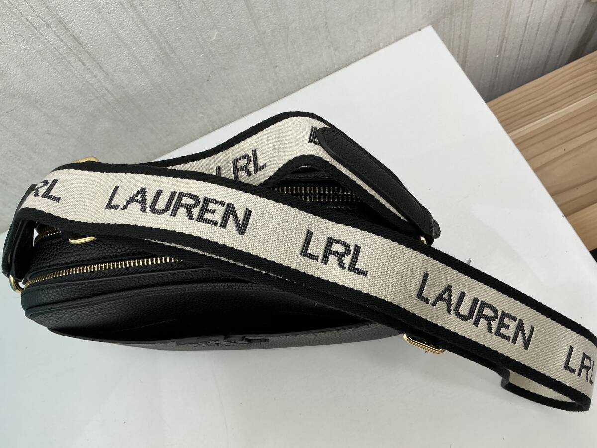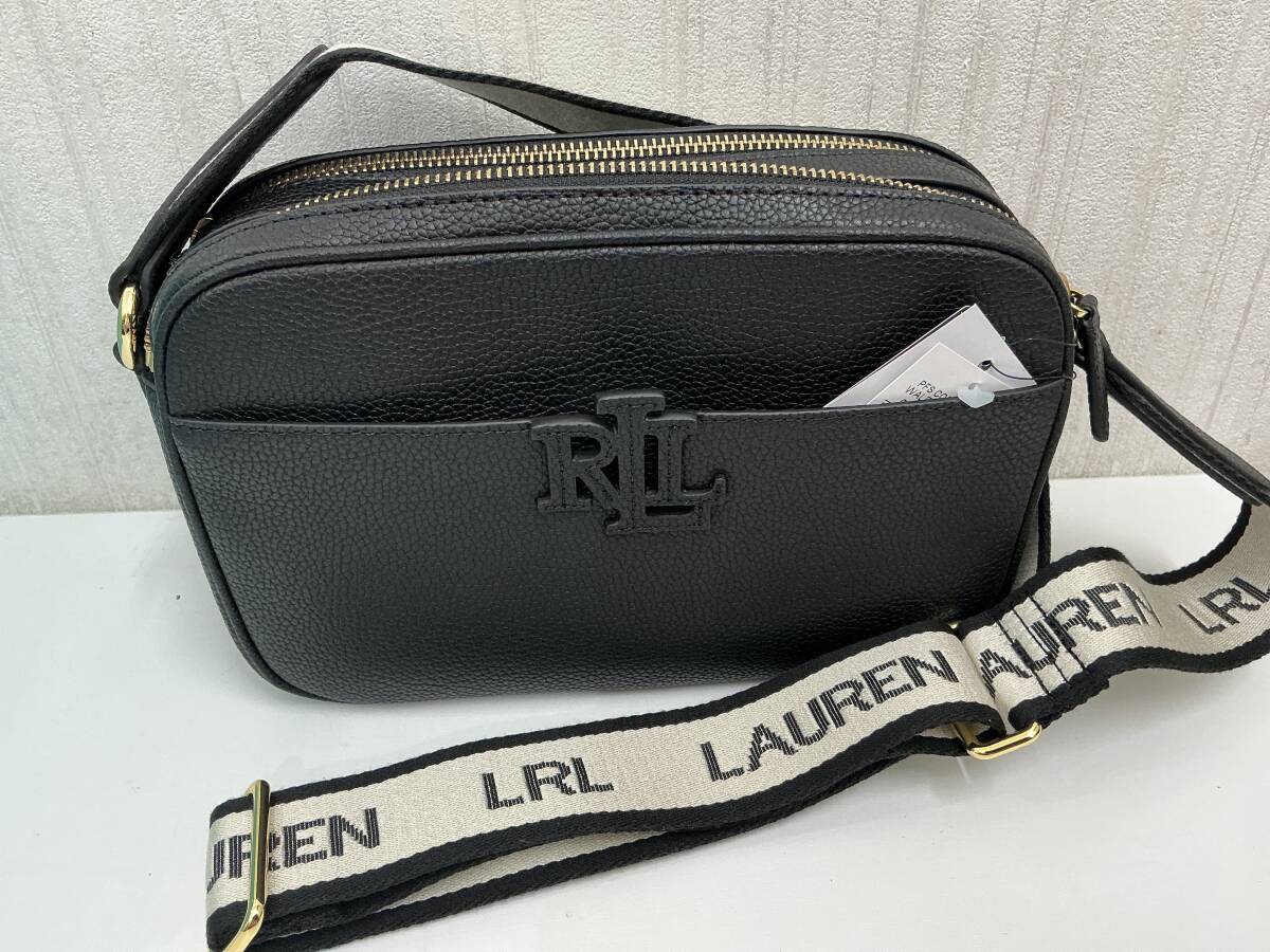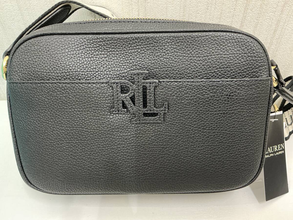 未使用品 RALPH LAUREN レザーショルダーバッグ 黒 布ショルダーストラップ タグ付未使用