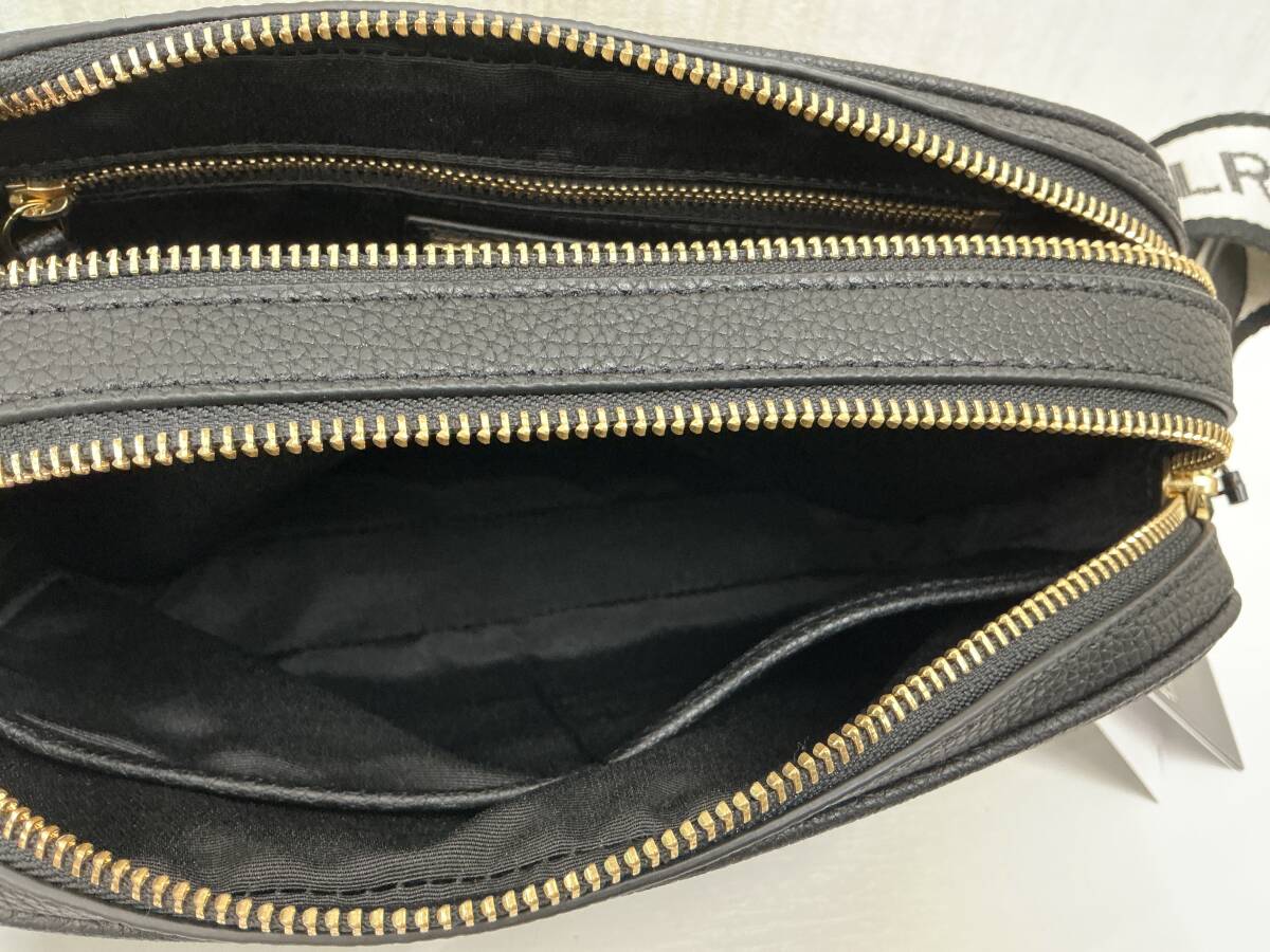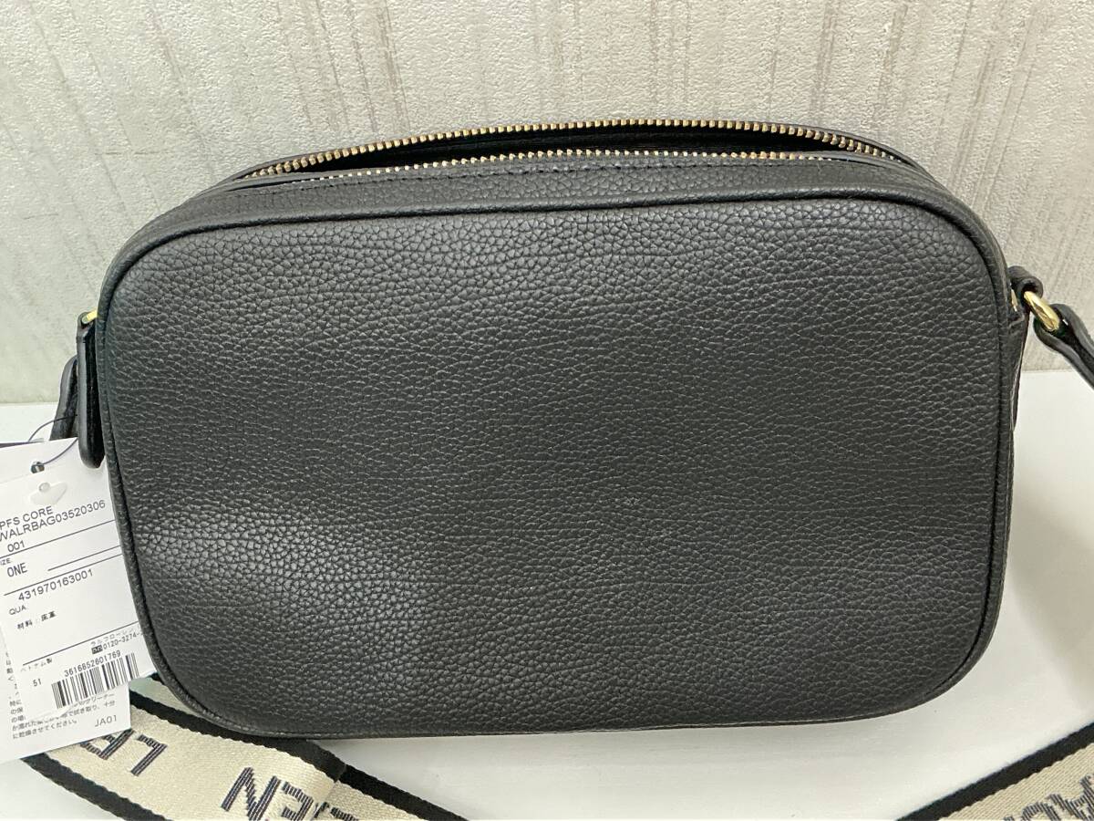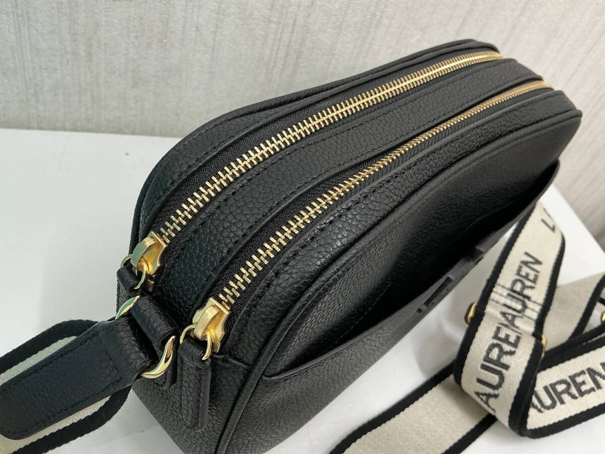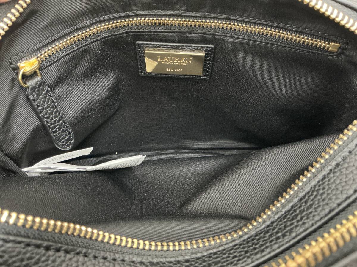 未使用品 RALPH LAUREN レザーショルダーバッグ 黒 布ショルダーストラップ タグ付未使用