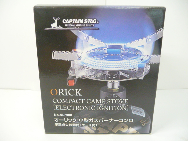 ☆展示品 未使用 CAPTAIN STAG/キャプテンスタッグ M-7900 オーリック 小型ガスバーナーコンロ<圧電点火装置付>ケース付(A1025)
