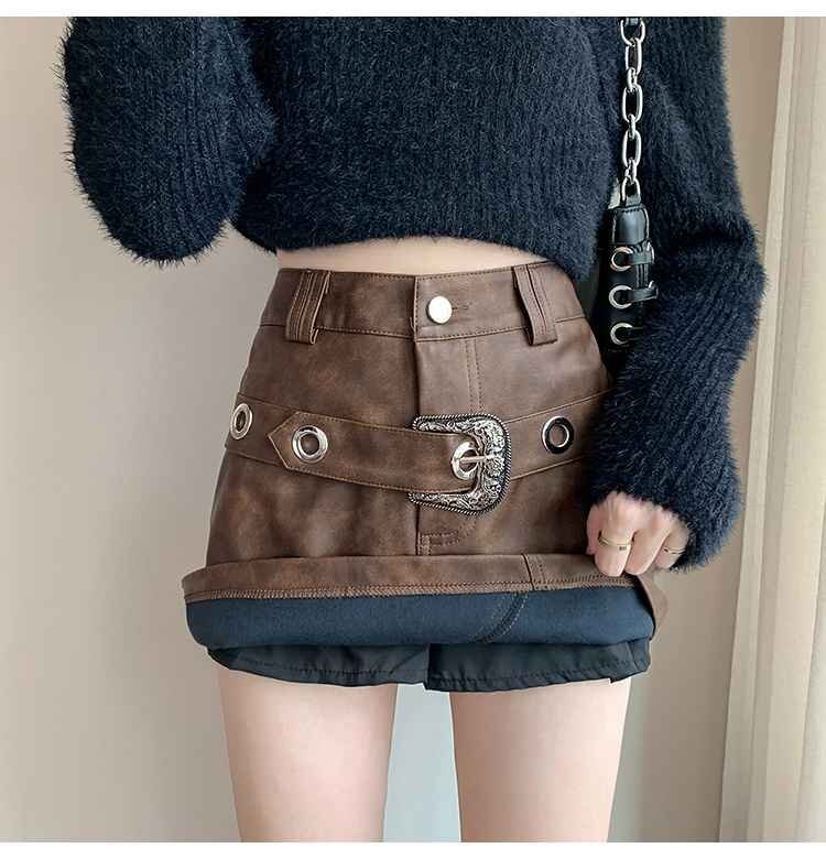 PUレザースカート ミニスカート Aライン ス力ート ミニ ハーフスカート 秋冬 XL ベージュ