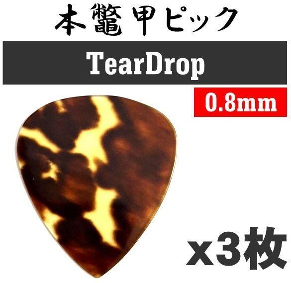 即決◆新品◆送料無料 本鼈甲ピック3枚/ティアドロップ0.8mm(べっ甲 /メール便