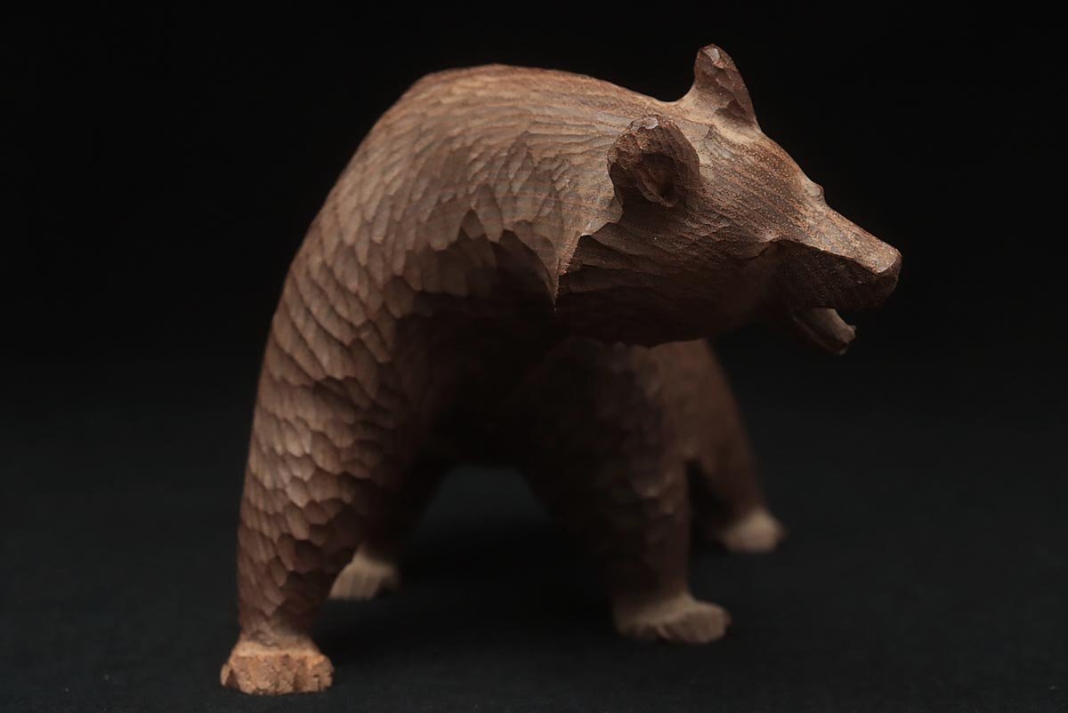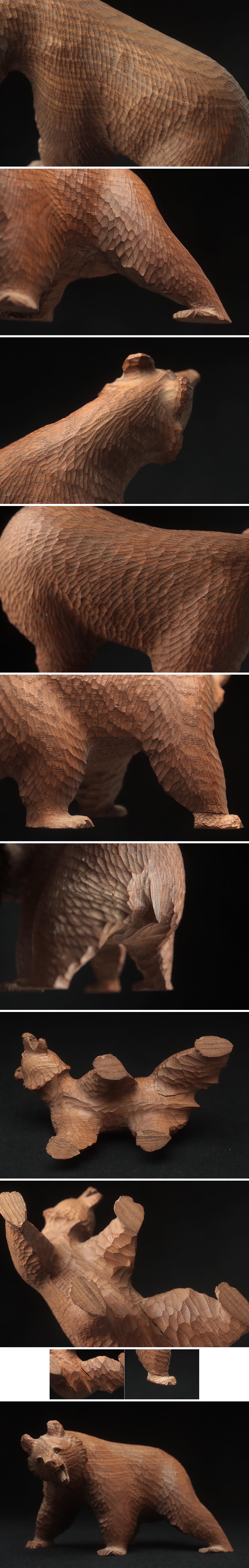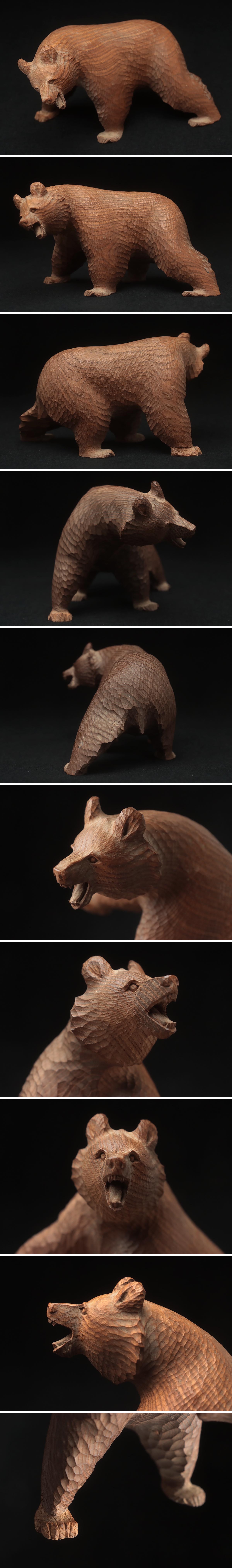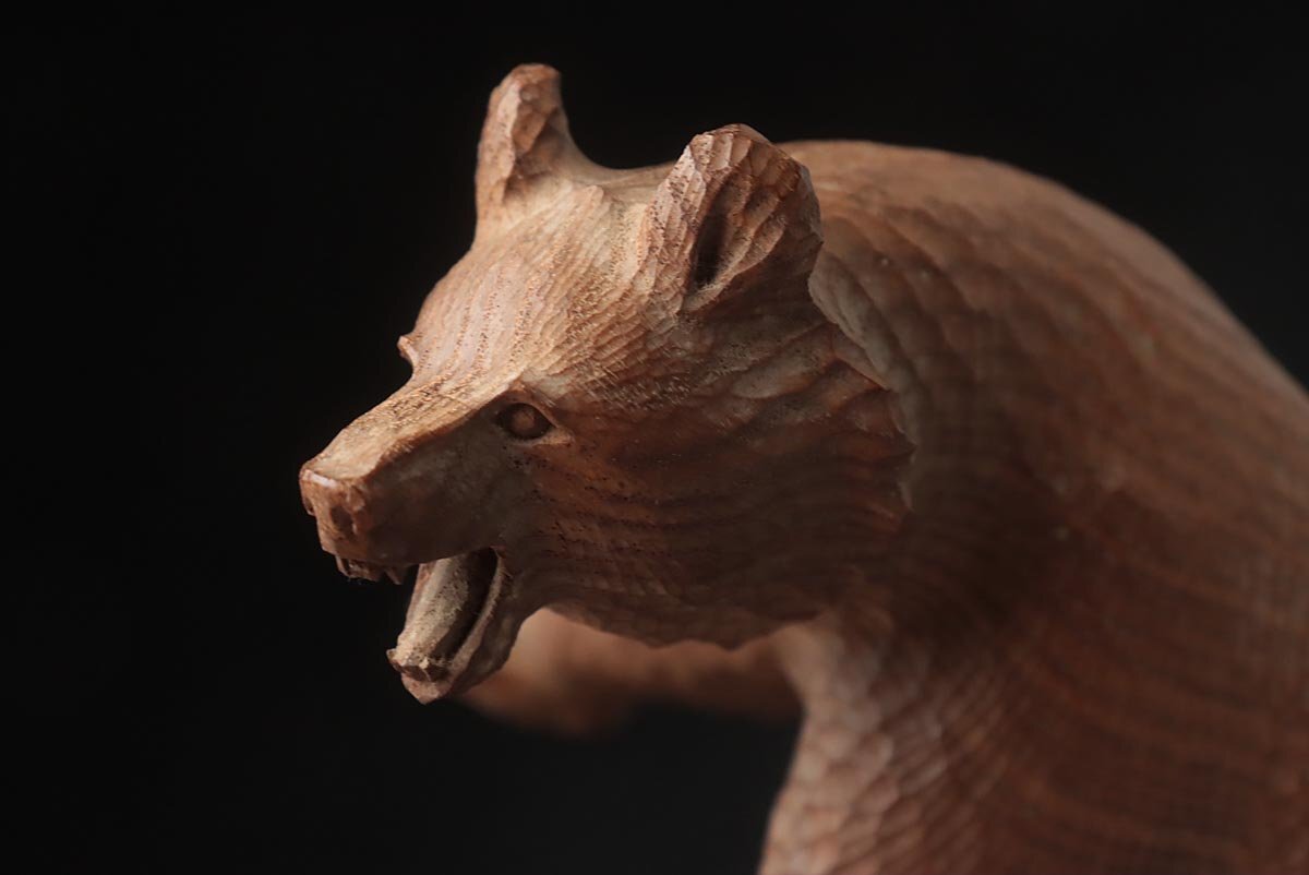 ◆ 時代 小振 木彫り熊「吠え熊」置物 幅15cm・「くま」床置 床飾 北海道 伝統工芸品 郷土玩具 古民芸 検)八雲 旭川 ◆