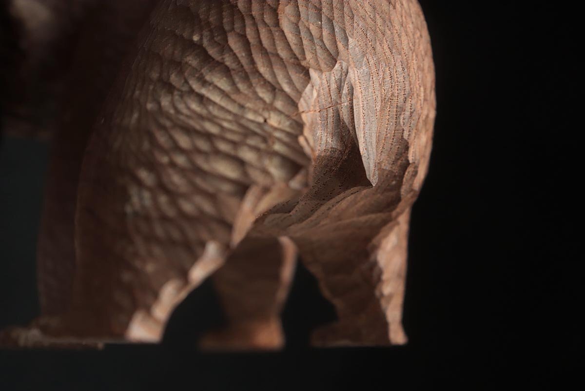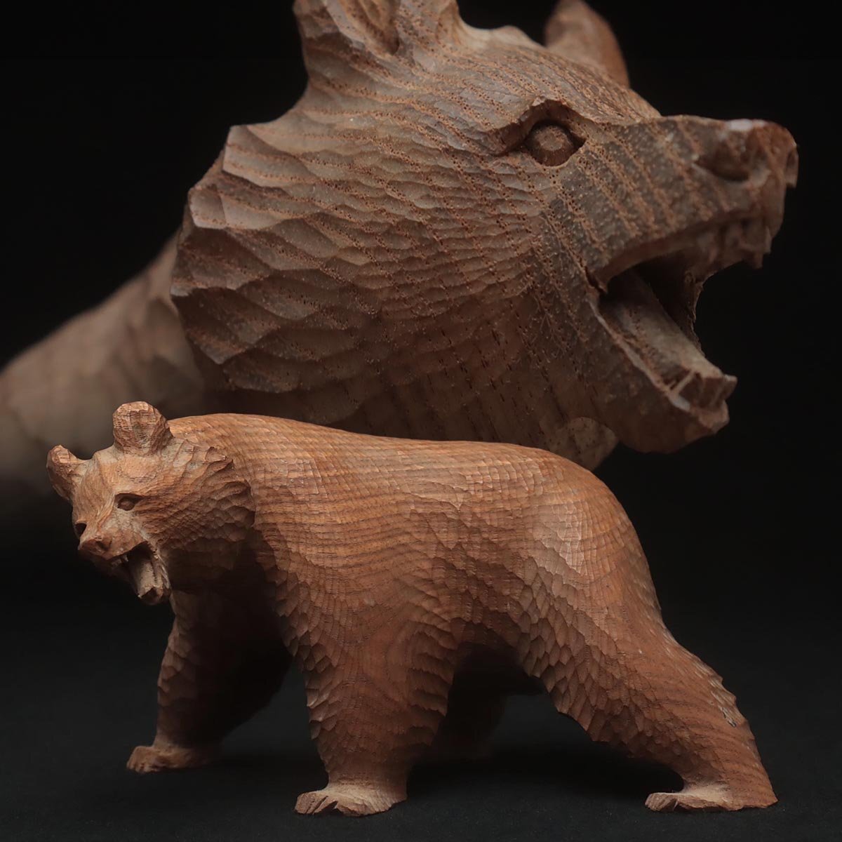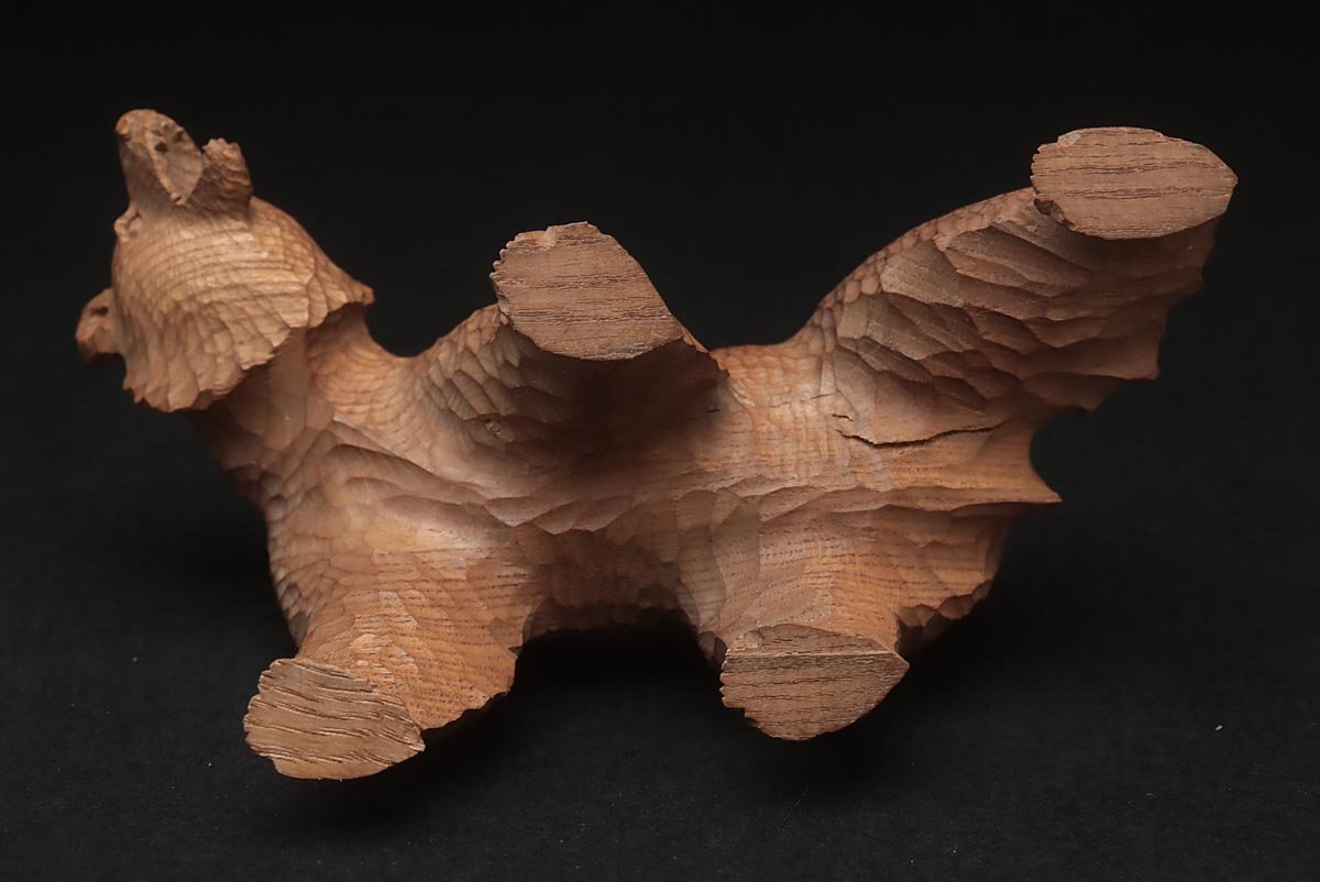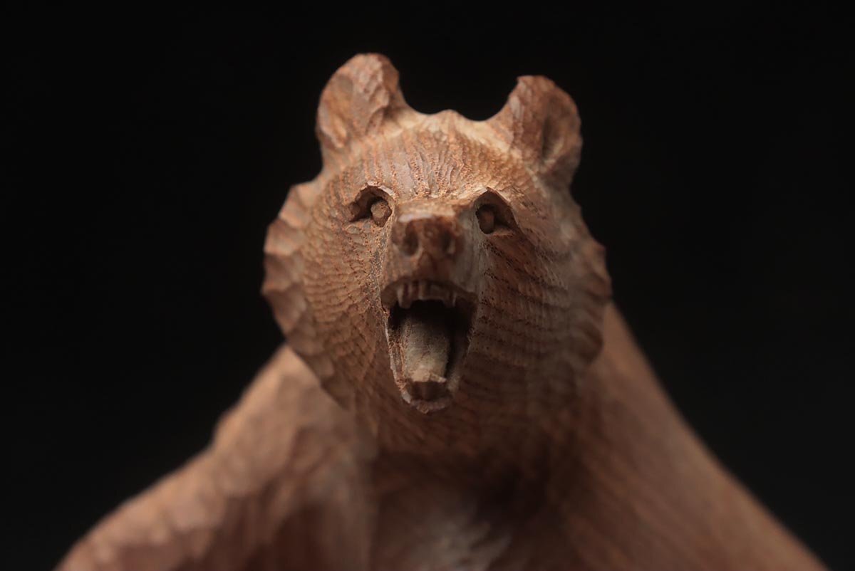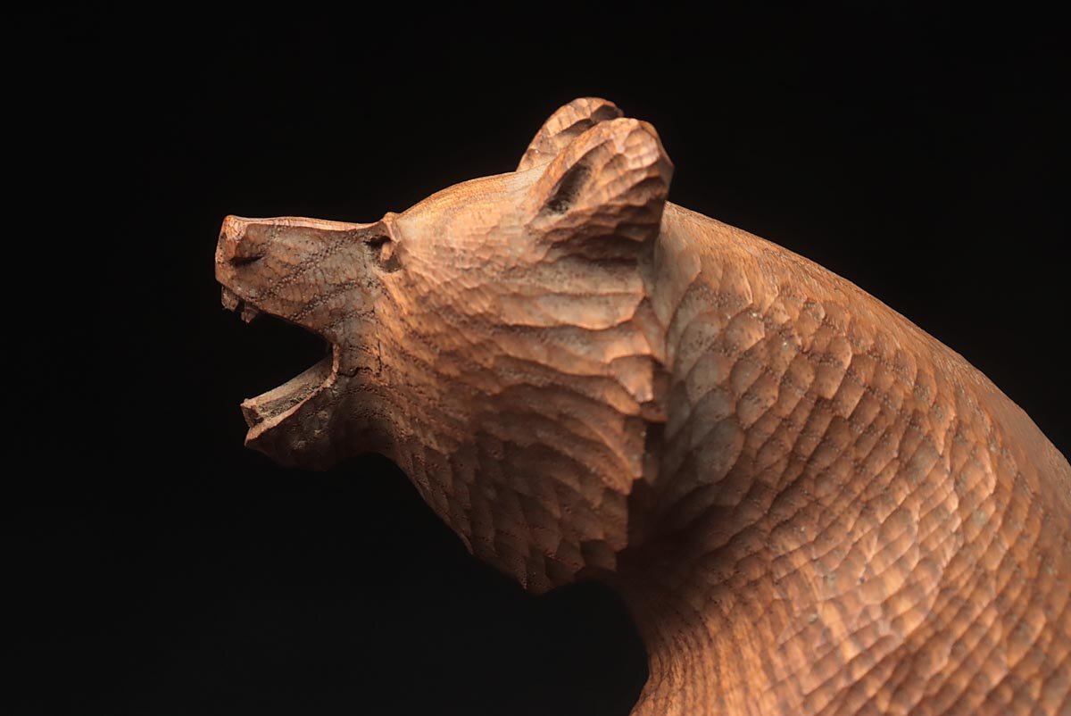 ◆ 時代 小振 木彫り熊「吠え熊」置物 幅15cm・「くま」床置 床飾 北海道 伝統工芸品 郷土玩具 古民芸 検)八雲 旭川 ◆