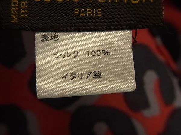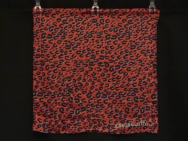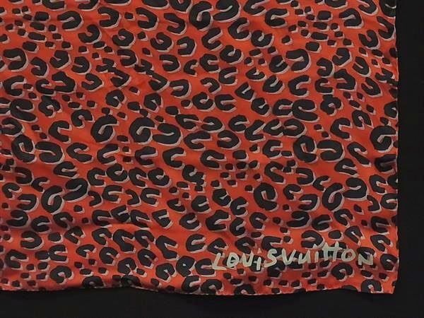 1円 ■美品■ LOUIS VUITTON ルイヴィトン シルク100% レオパード 豹柄 ショール スカーフ レディース レッド系×グレー系 FP6779