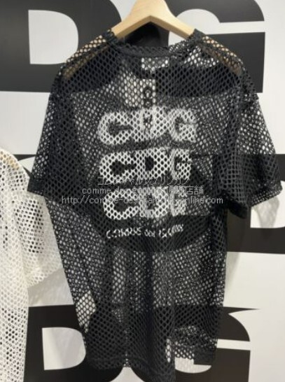 CDGコムデギャルソン メッシュ ビッグTシャツ-エアラインロゴ(黒・S) です。