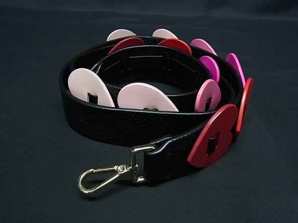 ■美品■ kate spade ケイトスペード レザー バッグ用 ショルダーストラップ 斜め掛け ブラック系×ピンク系 BS0508