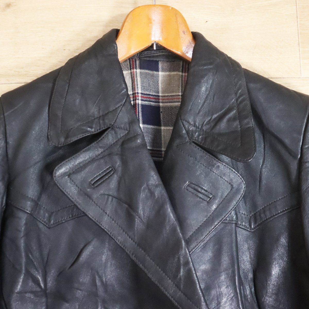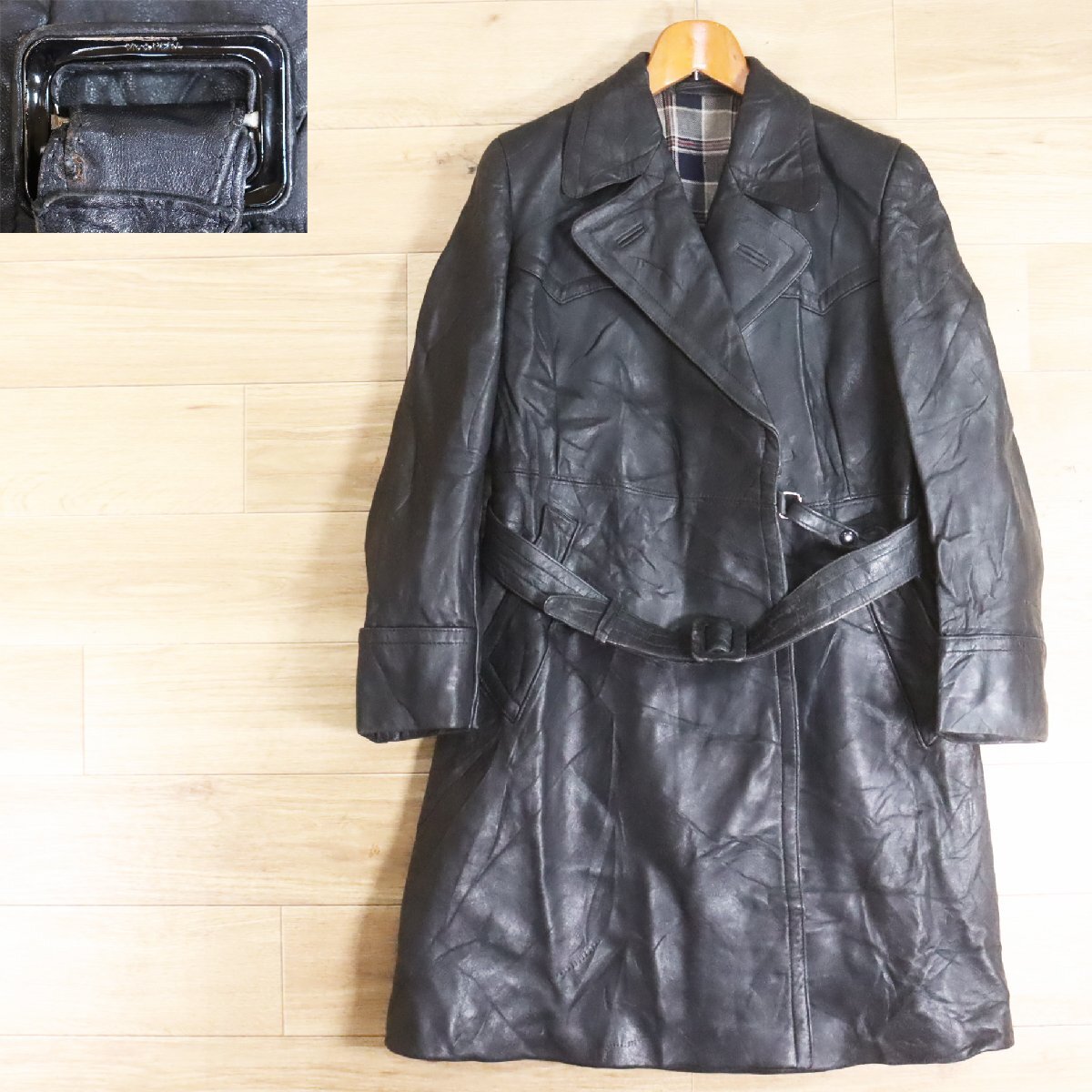 E3S/Y6.19-3 ビンテージ モーターサイクルコート 本革 レザーコート ラップコート レディース Mサイズ相当 ヴィンテージ