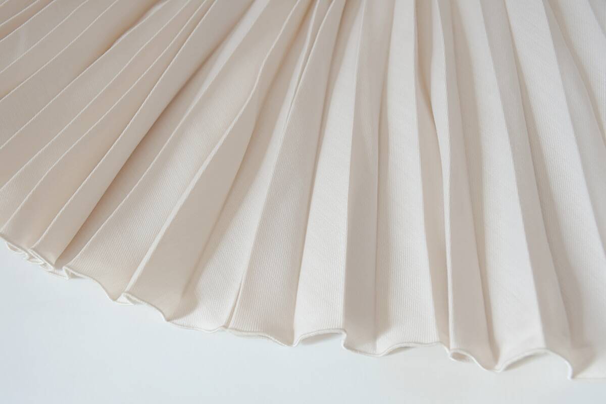 シワになっても戻りやすい機能的な素材で、アシンメトリーで動きのあるデザインに仕上がっています。