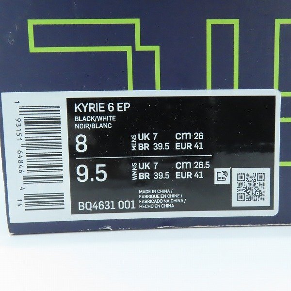 (2)【未使用】 NIKE/ナイキ KYRIE 6 EP/カイリー バスケットボールシューズ BQ4631-001/26 /080 | |||||||||||||||||||||||||