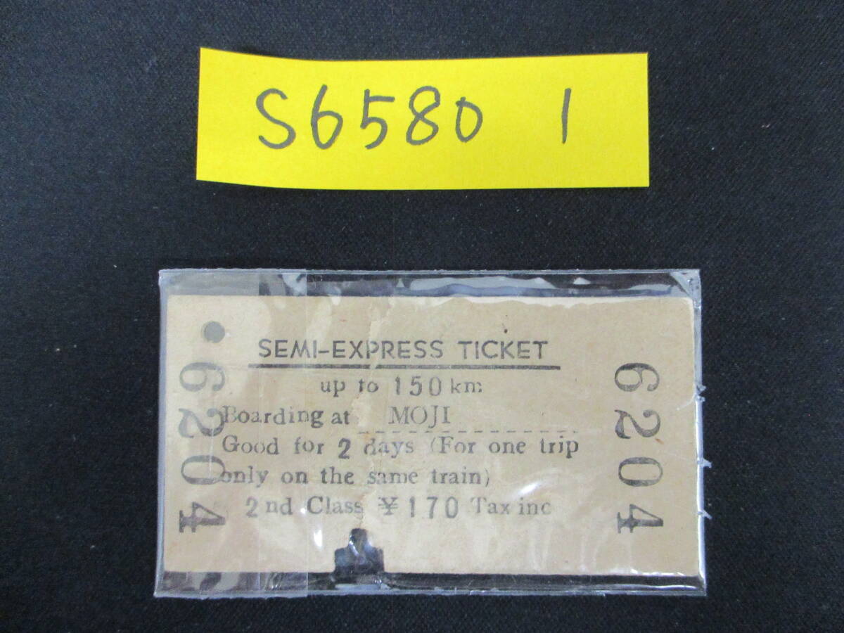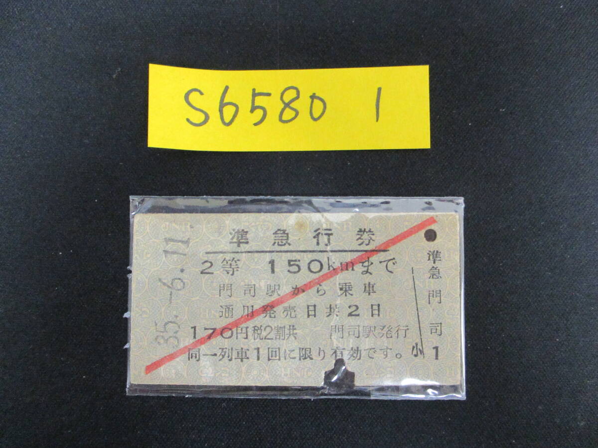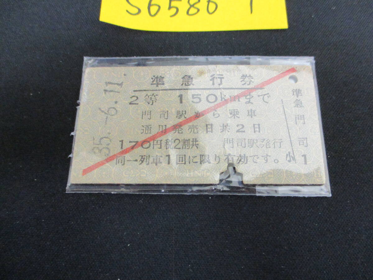 F7 【鉄道硬券】準急行券 2等150㎞まで 門司駅から乗車 昭和35.6.11 約1枚セット 【鉄道切符】 S6580