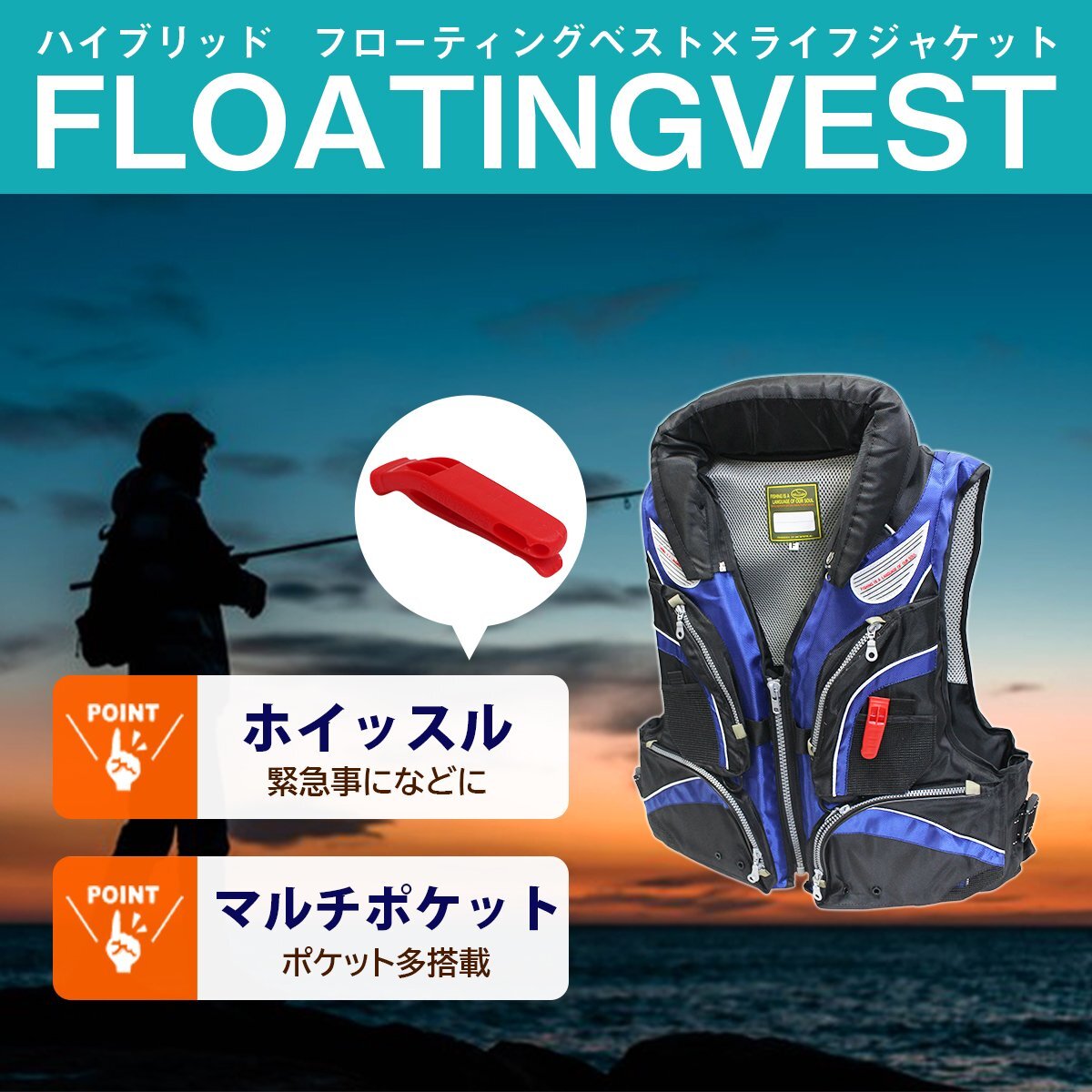 フローティングベスト ブルー 救命胴衣 釣り ベストタイプ 浮力脱着可能 ライフジャケット フィッシングベスト ポケット付き
