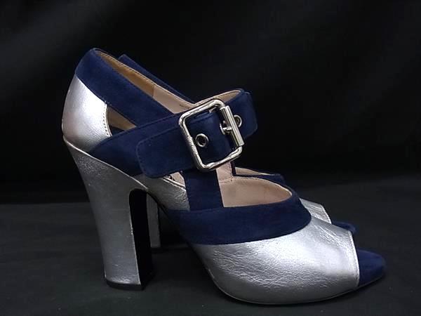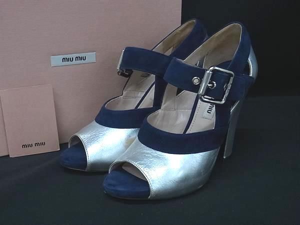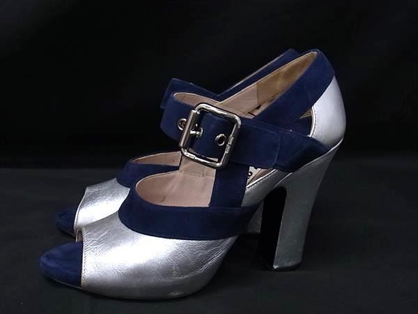 miumiu ミュウミュウ レザー×スエード ヒール パンプス 表記サイズ 36 (約23.0cm) 靴 シューズ シルバー系×ネイビー系 DJ0763