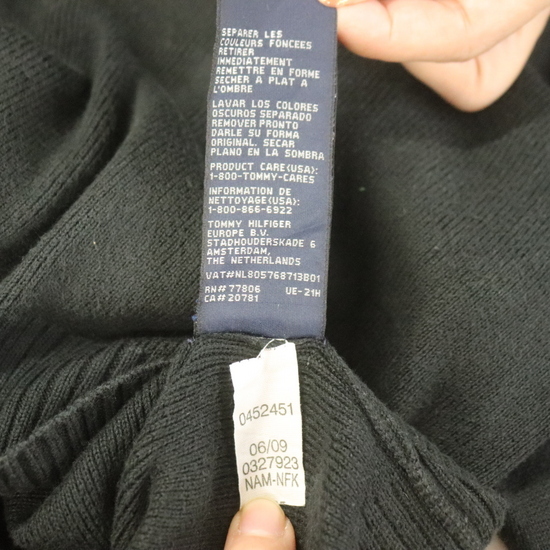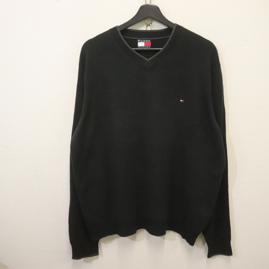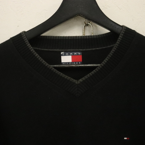 商品名 X739 2009年製 トミーヒルフィガー コットンニットセーター■00s 表記Mサイズ 黒 ブラック Vネック ワンポイントロゴ アメカジ 古着