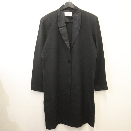 商品名 X741 80sビンテージ JULIESTEVENS ロングジャケット■1980年代製 表記16サイズ 無地 ポリエステル レディース 90s 激安 古着卸 ブラック