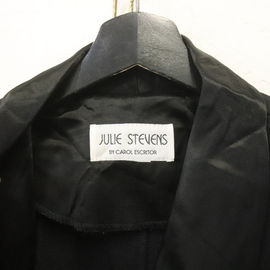X741 80sビンテージ JULIESTEVENS ロングジャケット■1980年代製 表記16サイズ 無地 ポリエステル レディース 90s 激安 古着卸 ブラック
