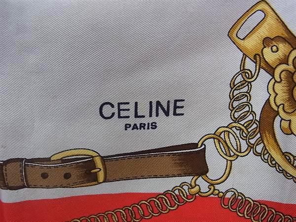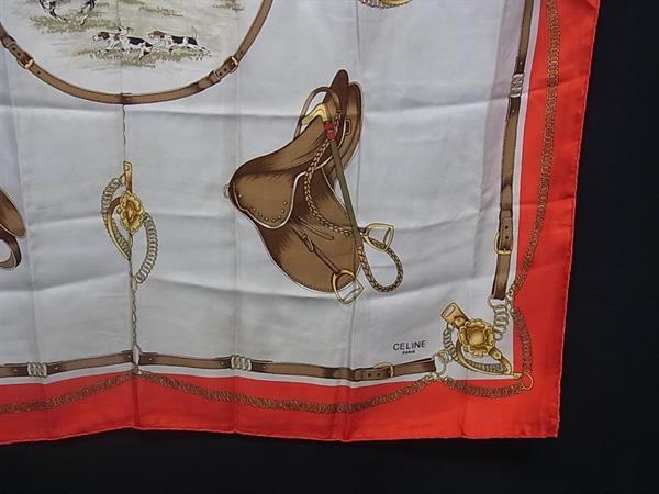 CELINE セリーヌ ホース 馬 総柄 大判 スカーフ ストール ショール レディース レッド系×マルチカラー DJ0368