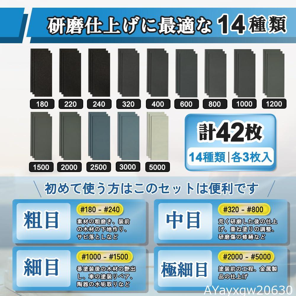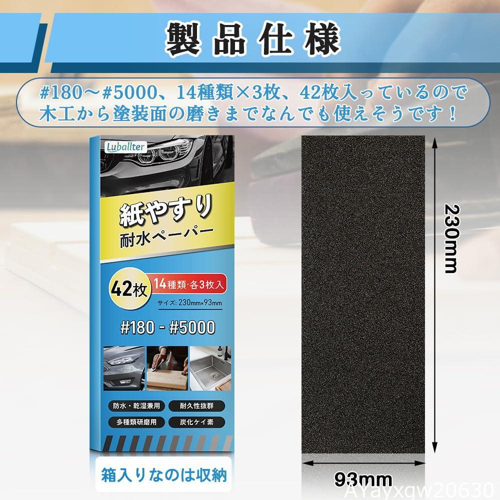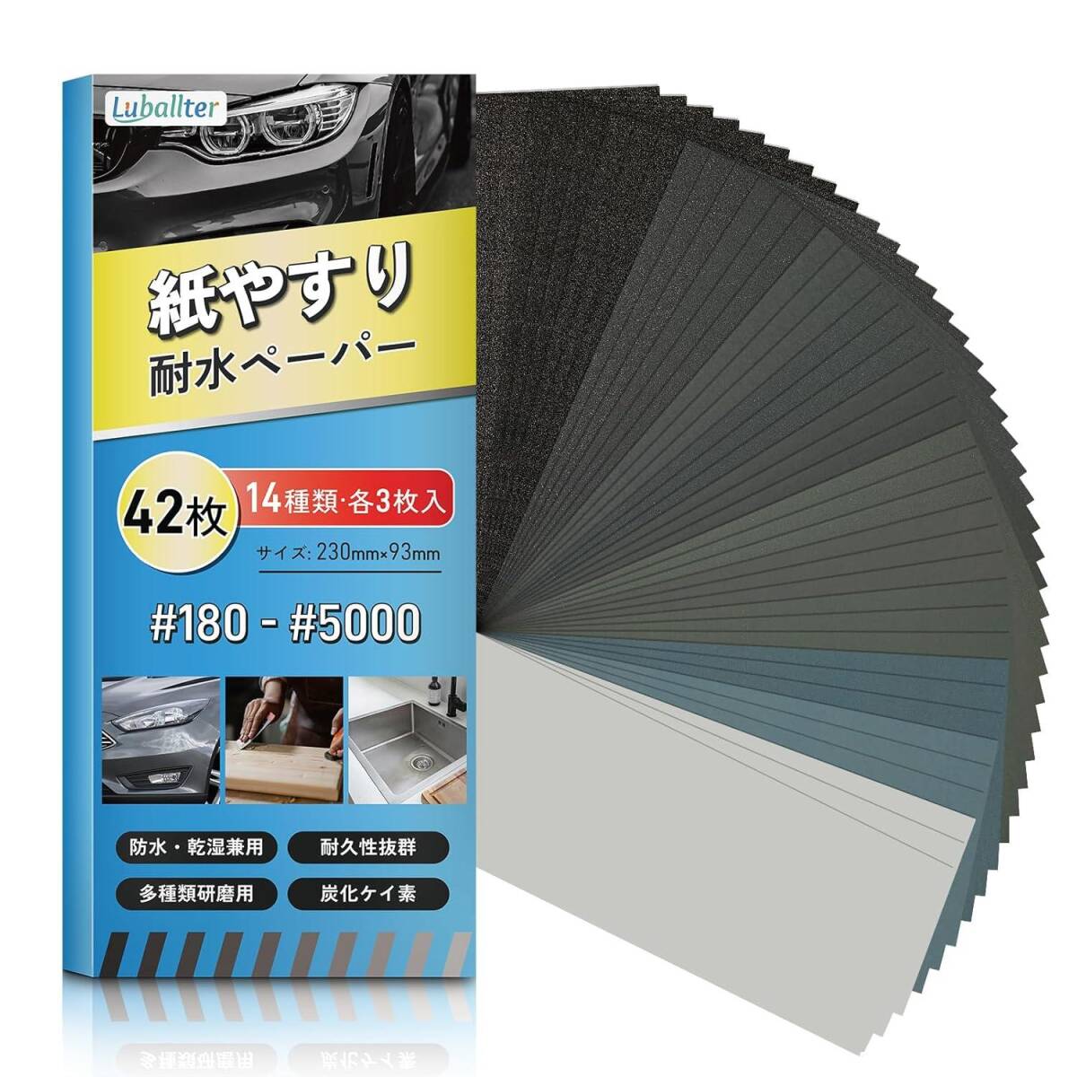 Luballter 紙やすり 42枚14種類 180~5000番 耐水ペーパー セット 研磨シート 230×93mm サンドペーパ