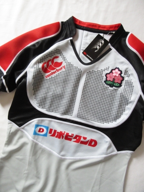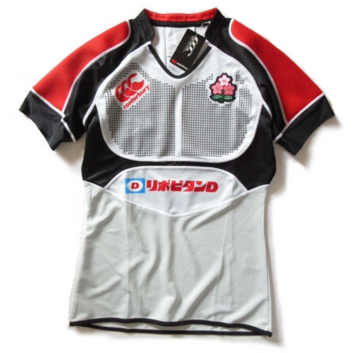 カンタベリー製 ラグビー日本代表 選手支給品 ジャパン プラクティスジャージです。 日本代表選手が試合前や 練習試合などで着用するために 支給された練習用のジャージです。 コンタクトに強く両肩部が厚みがあり 胸部はボールキープ用の ラバーが施されています。 異なる機能を持った素材・ シルエットを組み合わせる事で、 ラグビーに求められる 運動パフォーマンスの向上を図った HYBRID型のラグビージャージです。 フィットタイプなので身幅より 胴回りがシャープなっている 本格的ラガーマンジャージです。 製品特質・選手仕様の為、 サイズよりフィット感があります。 ※観戦用ではありません 桜エンブレム、スポンサー入り、 JAPANの施しのある日本代表のレアな逸品です。 ◇CANTERBURY JAPAN PRACTICE JERSEY R3500J-12 HYBRID Silhouette ◇日本製 ◇(株)カンタベリーオブニュージーランド ジャパン正規品 ◇状態:未使用 下げ札あり 外装なし ◇素材:画像で確認できます ◇カラー:12 グレー ★サイズ表記 メンズ 5L チェスト110~120cm 身長185~190cm 実寸 身幅 60cm 着丈 80cm(背面) 裄丈 49cm ※多少の誤差はご了承ください ●モニター環境により実際のお色と異なる場合がございます ●採寸方法は全アイテム「平置き」です。 採寸方法により、若干の誤差(伸縮による1~2センチの誤差)は あると思われますがご了承下さい。 | |||