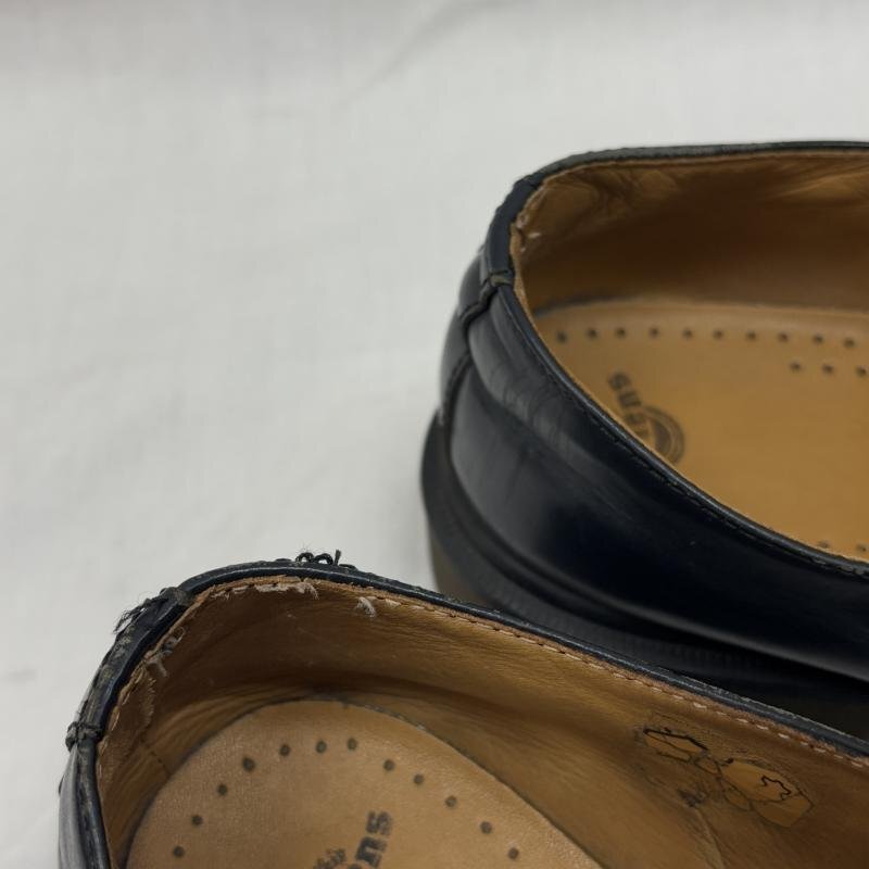 色は黒と紺色の中間のような色合いです。履きシワあり。アッパーに擦れ汚れ、右足にひび割れ。ソールの減り。内かかとにステッチ抜けあり。