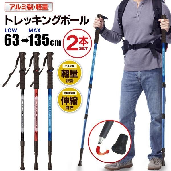 丈夫で軽いアルミ製 伸縮式トレッキングポール 2本セット ★両手で使える2本セット★ | ||||||||||||||