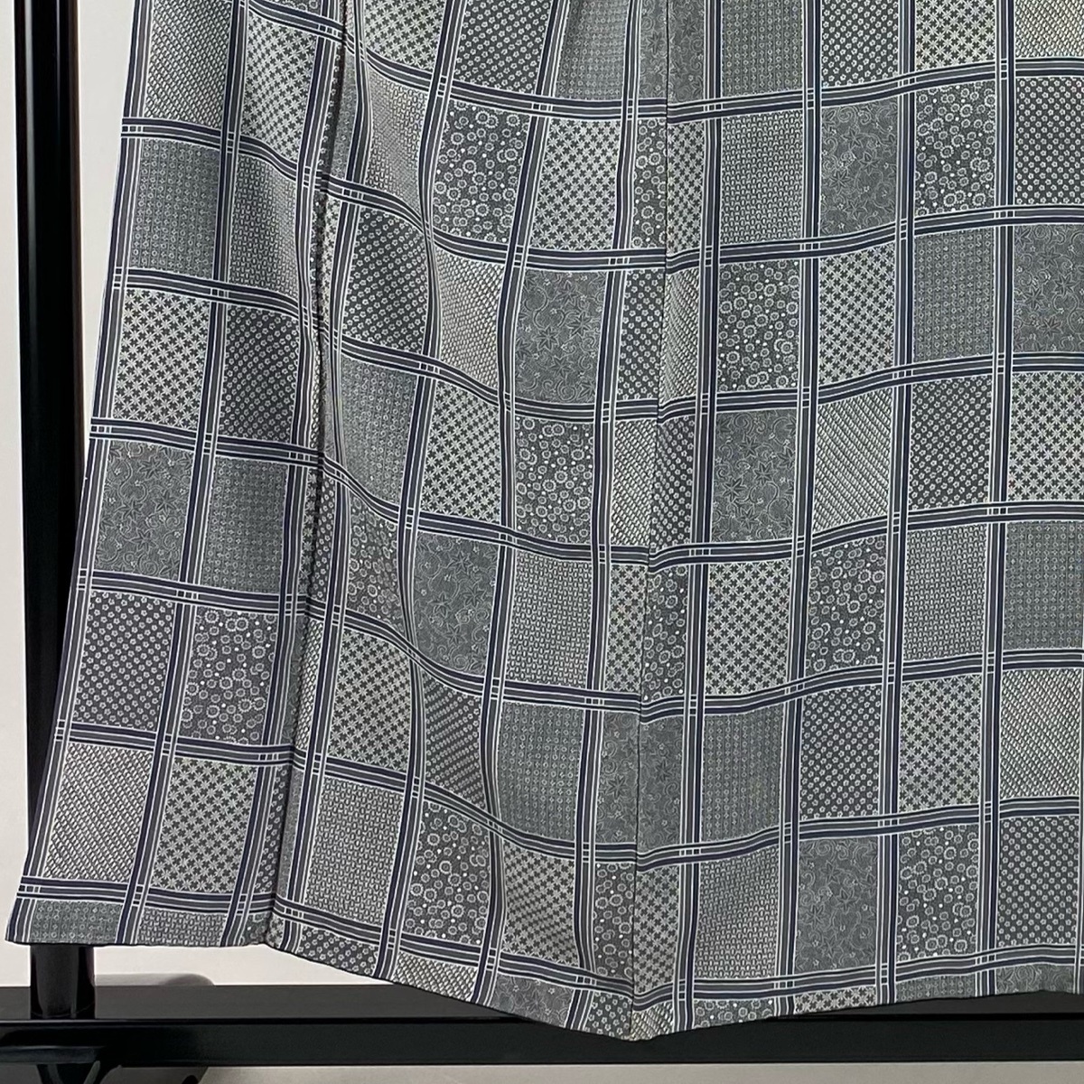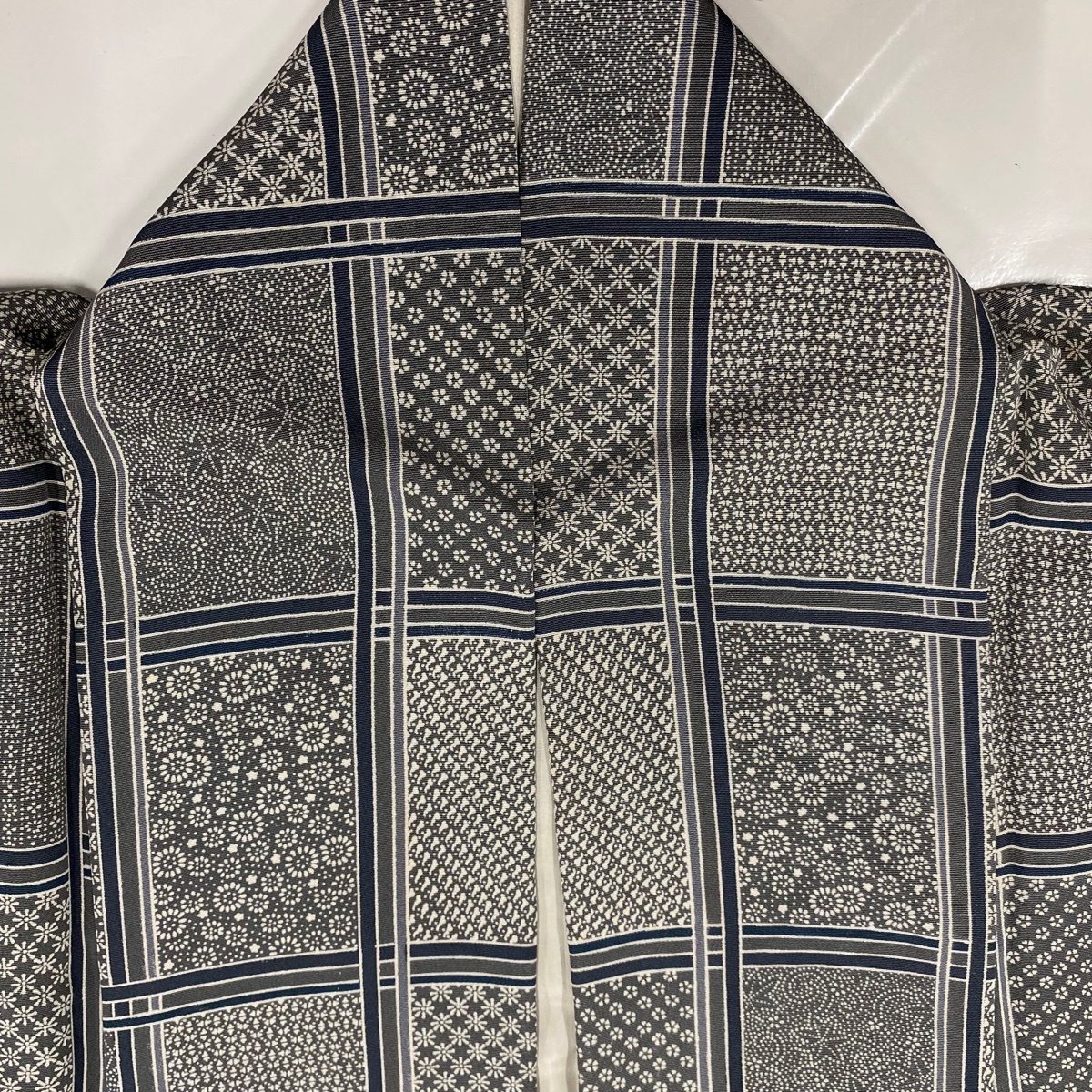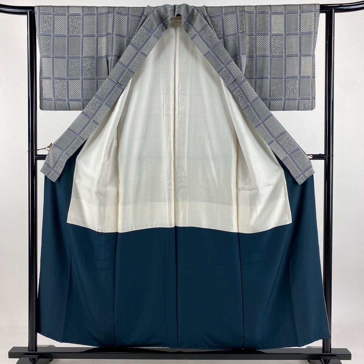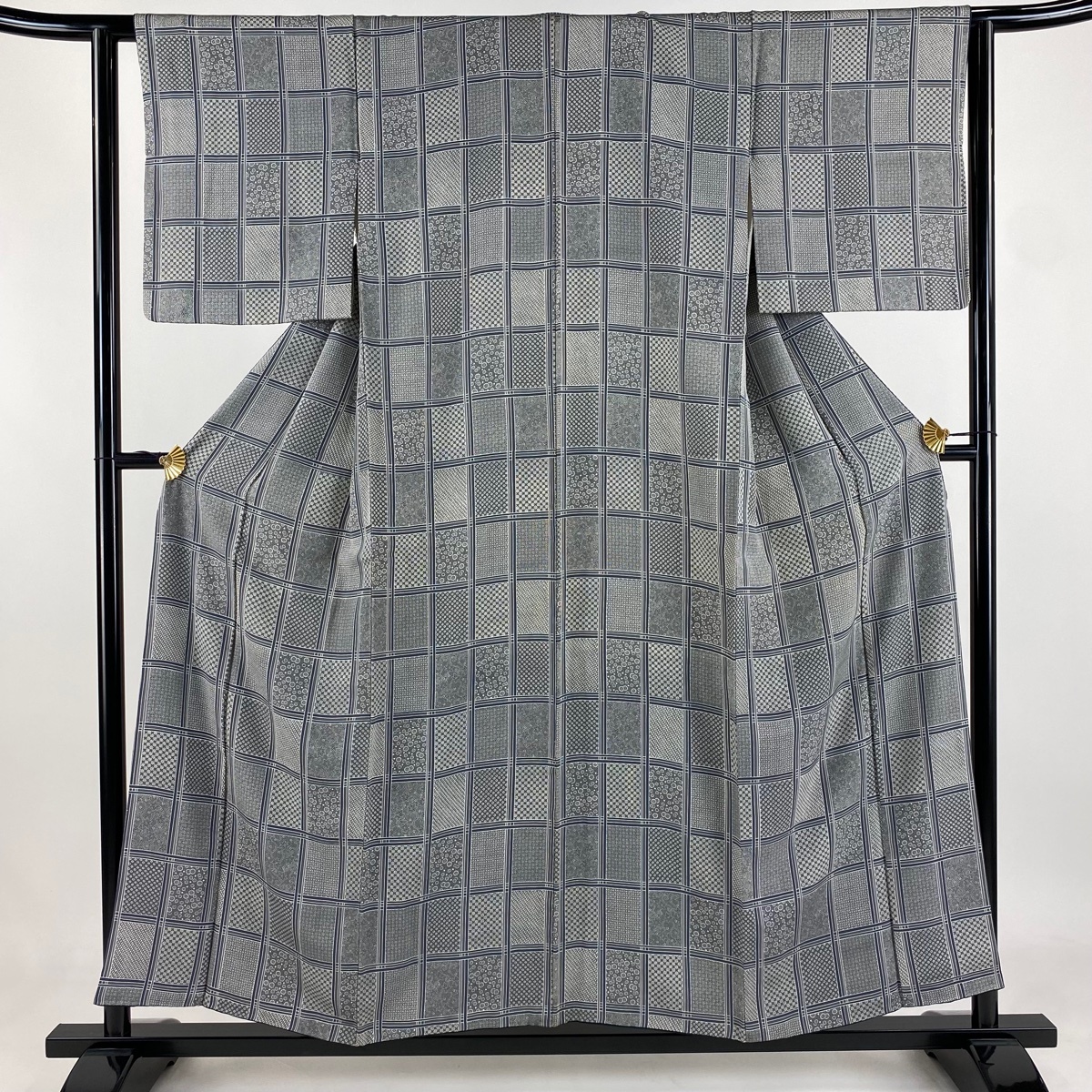 | 小紋 名品 格子 寄せ柄 灰色 袷 身丈155.5 裄丈62.5 S 正絹 【中古】 |