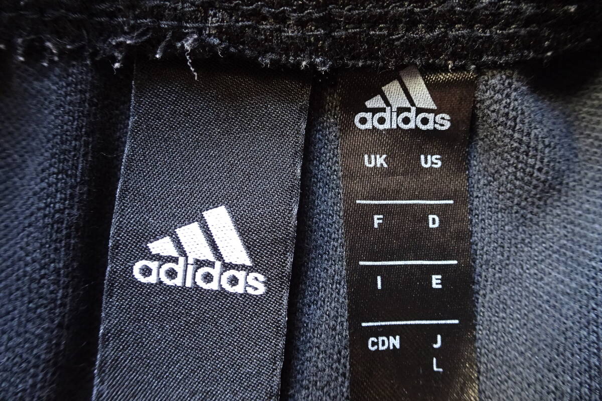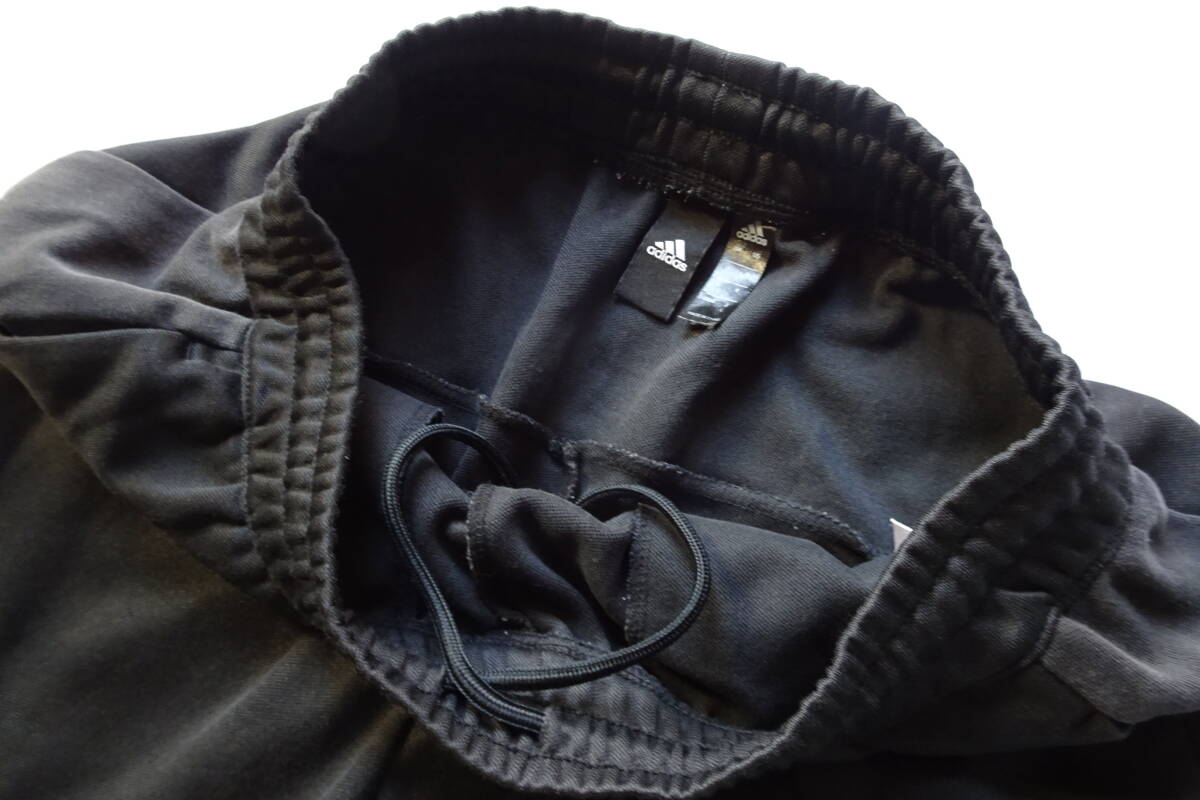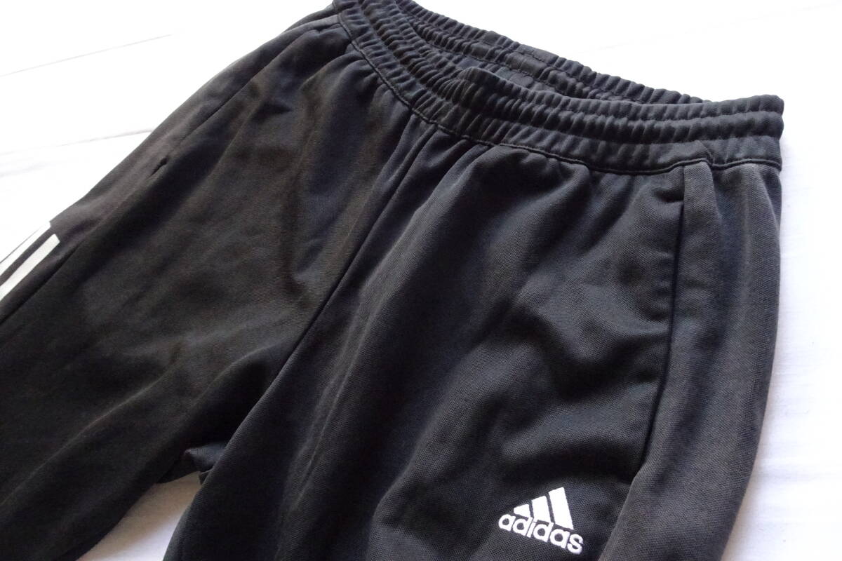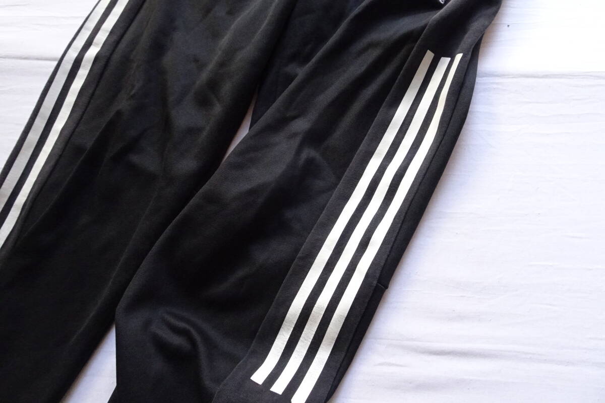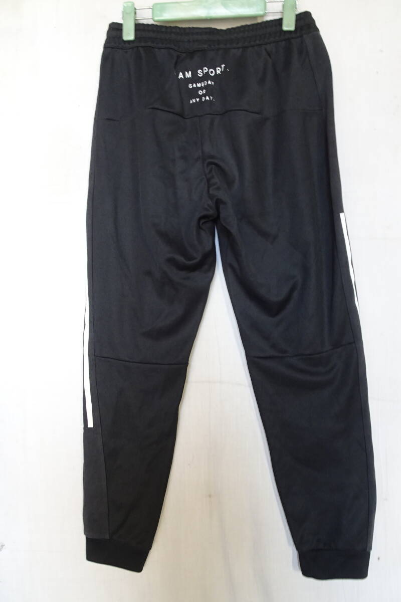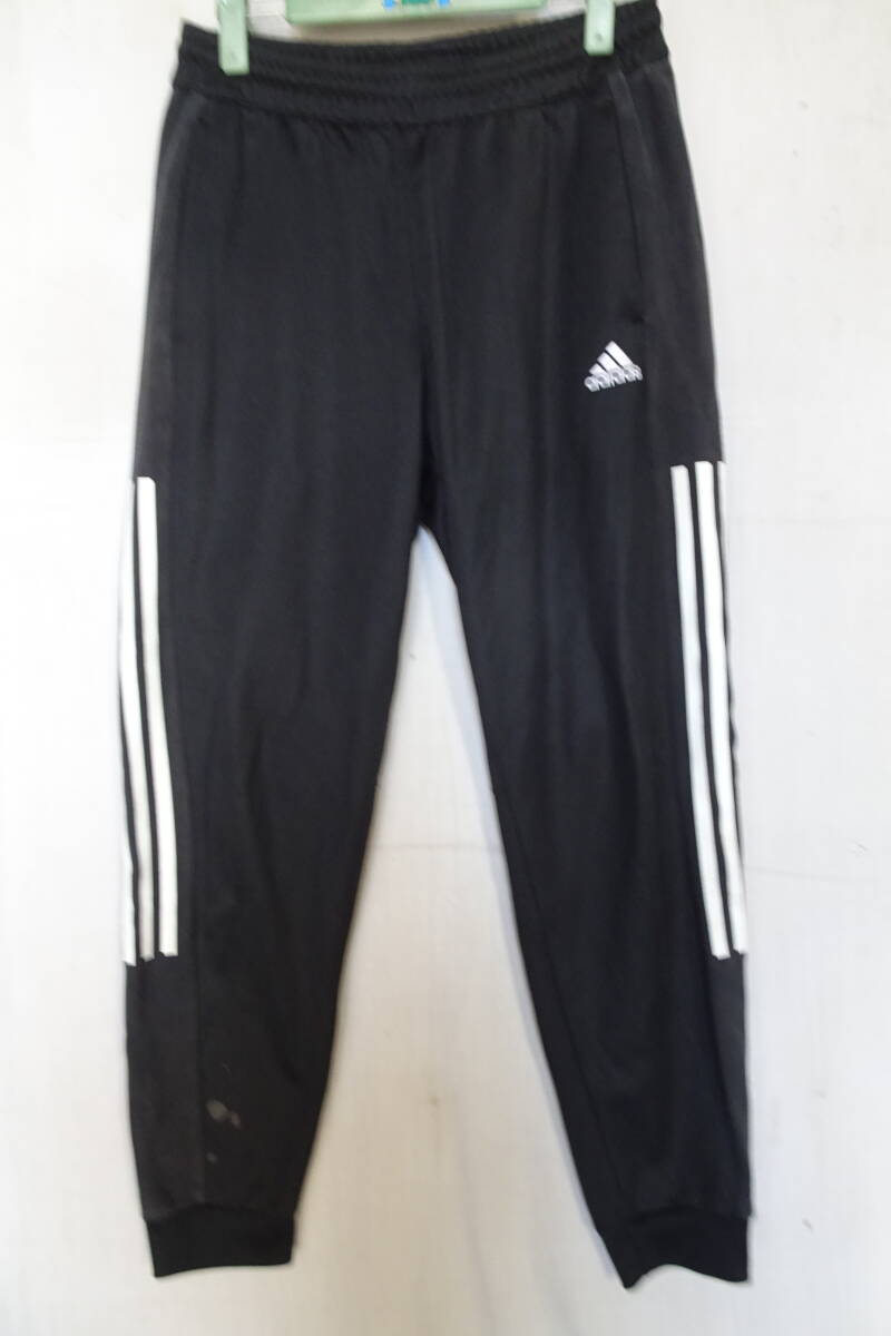 adidas/アディダス/トラック長パンツ/ジャージ素材/白3本ラインプリント/裾リブ/ロゴししゅう/スポーツ/黒/ブラック/Lサイズ(10/2R7)