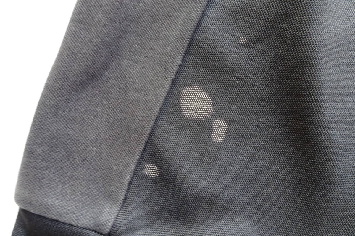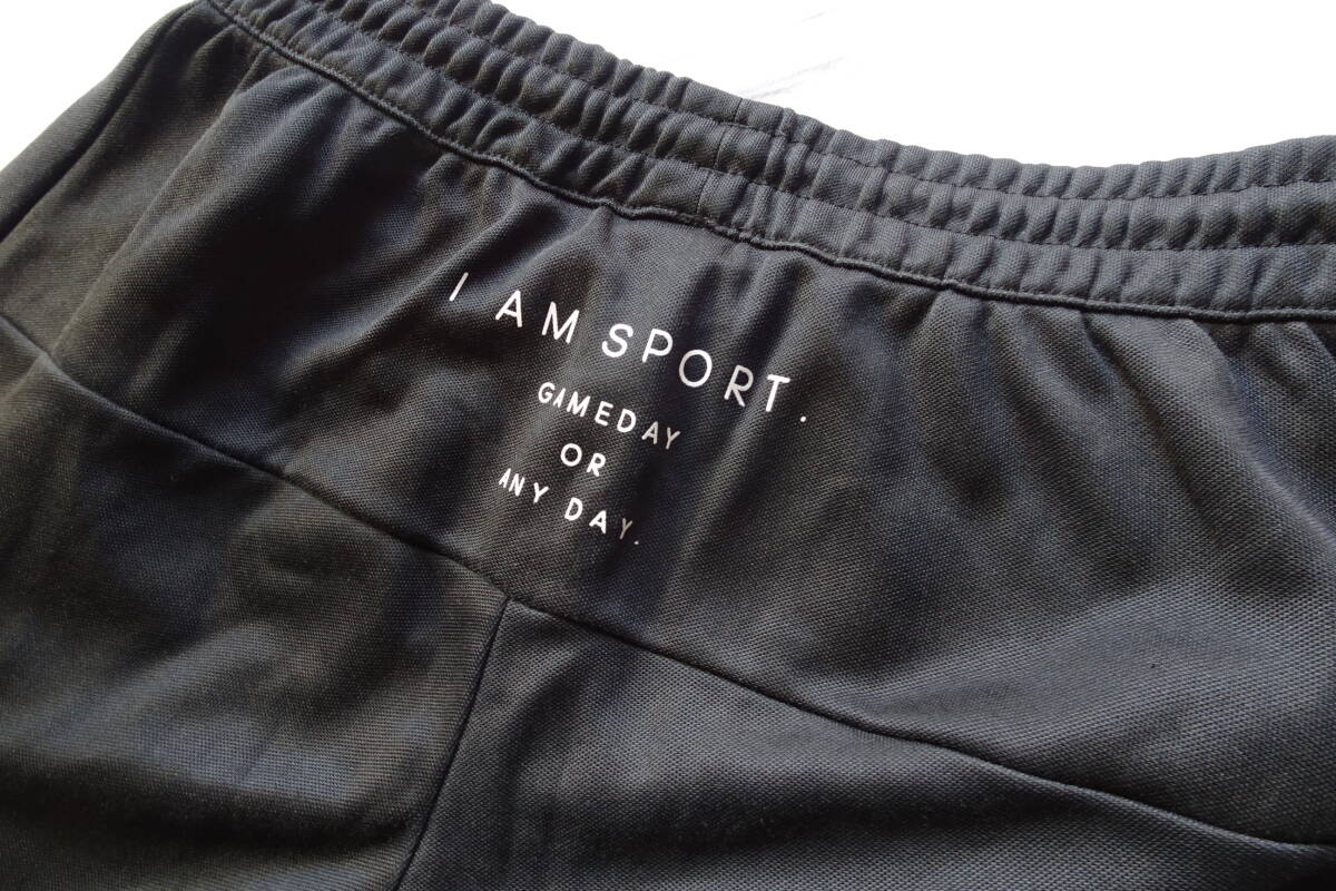 脇、チャコールグレー切り替え配色、白3本ラインプリント入りです。