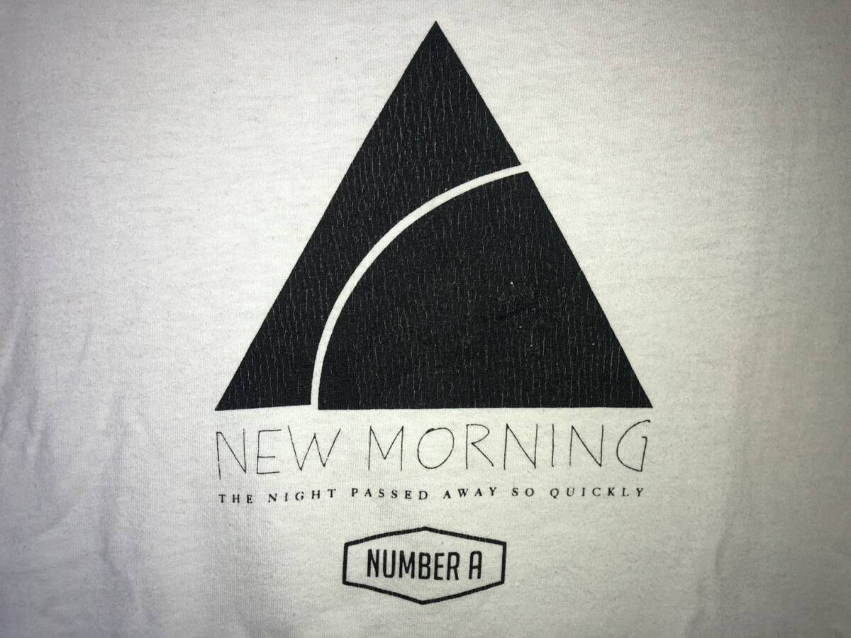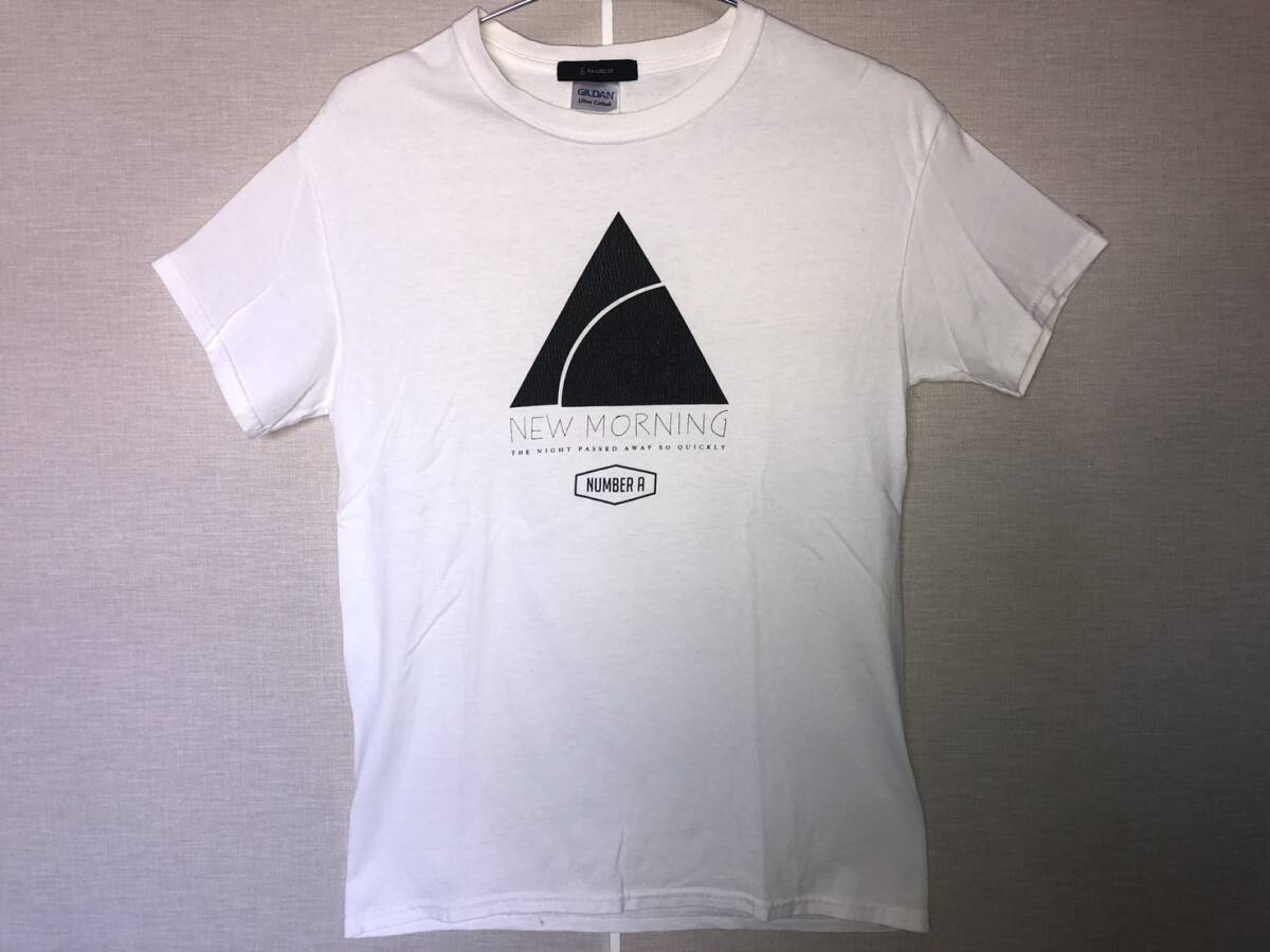 G RAGE BLUE 半袖 サイズS ホワイト NEW MORNING NUMBER A 白 デザイン トライアングル USED古着 即決