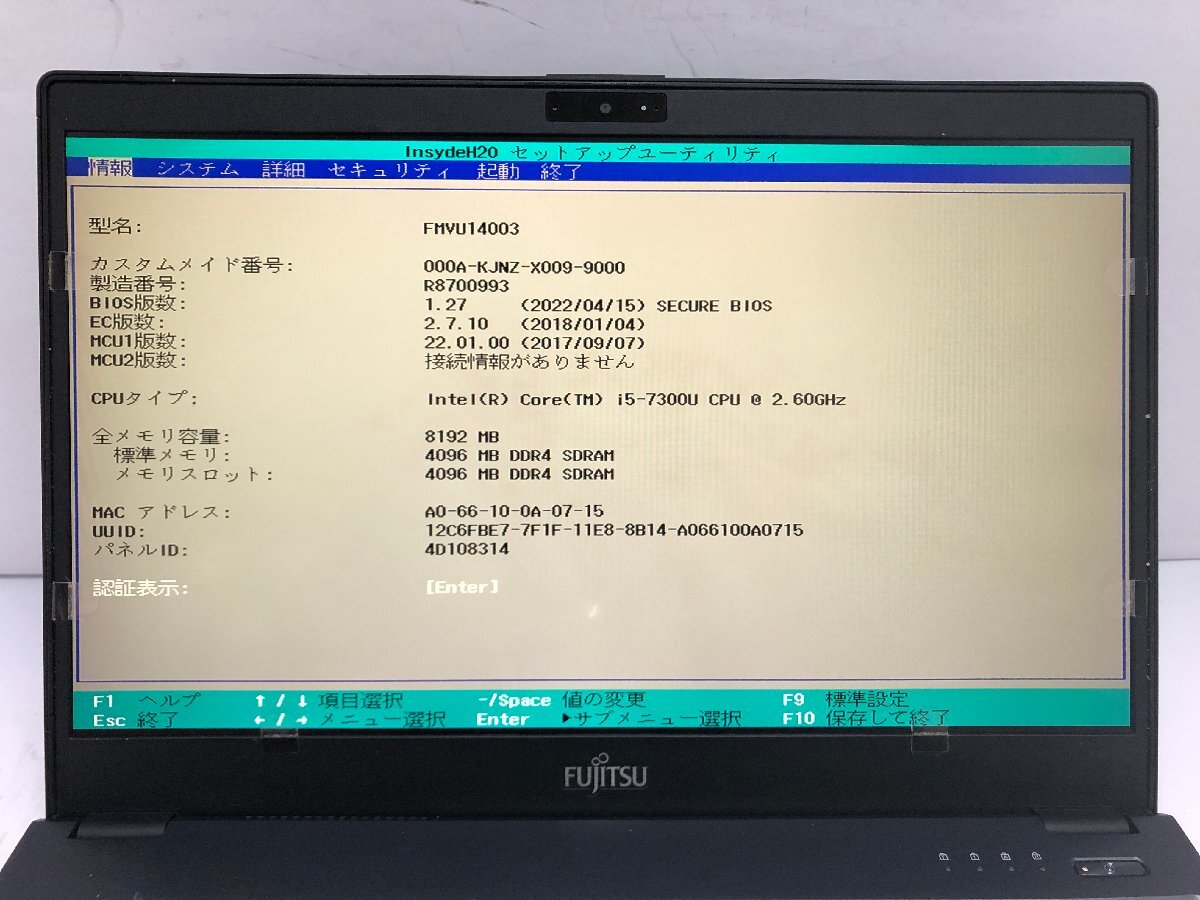 ジャンク/ FUJITSU FMVU14003 LIFEBOOK U938/S Intel Core i5-7300U メモリ8.19GB ストレージ無し 【K22042】