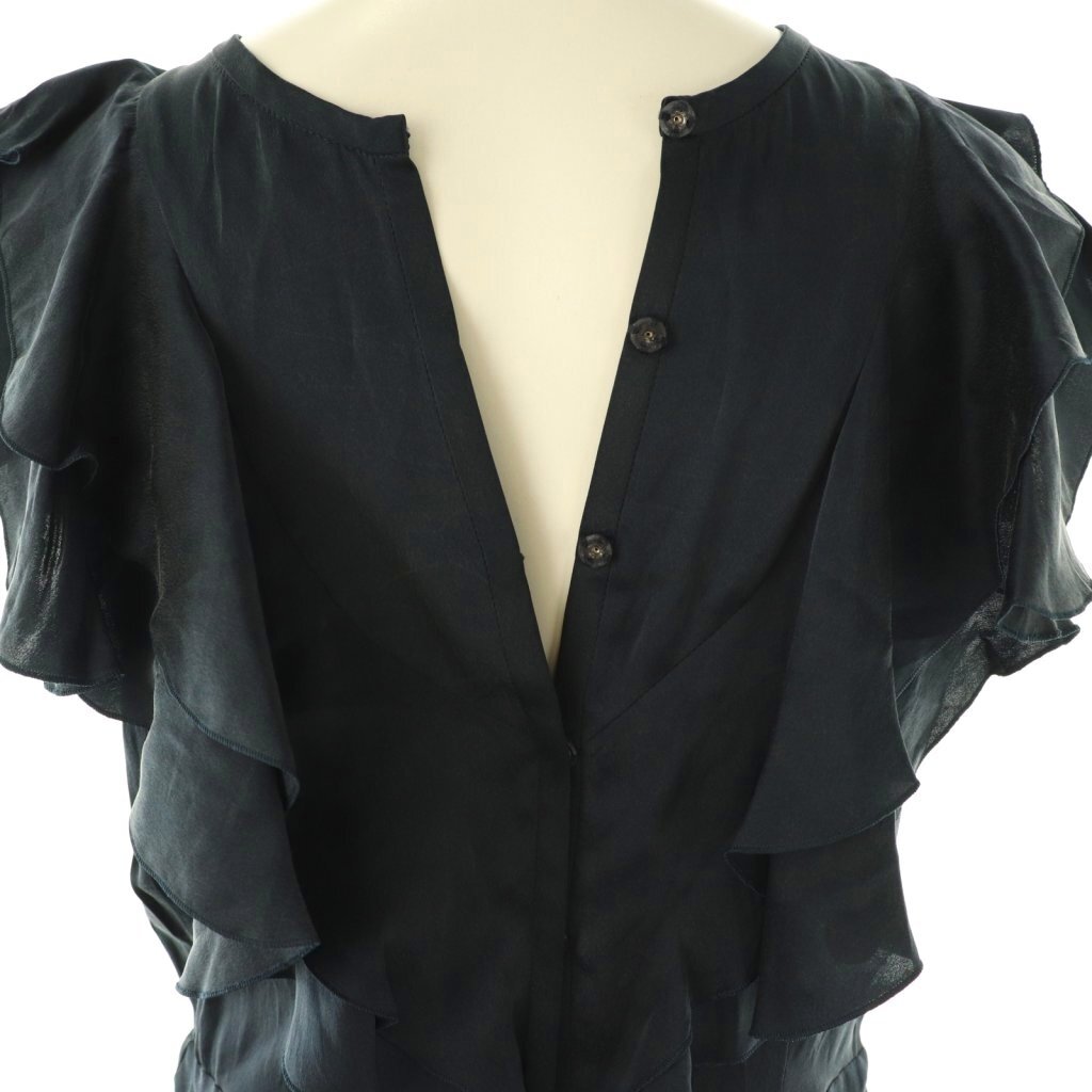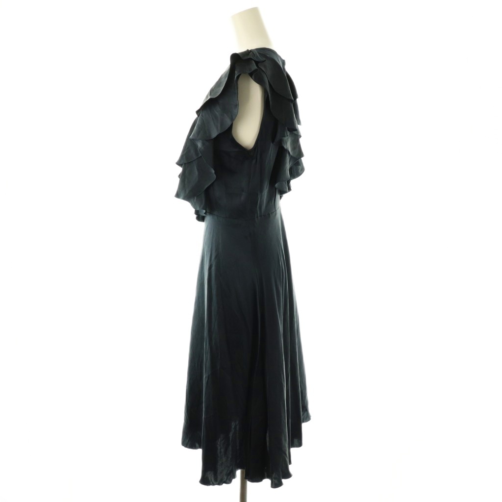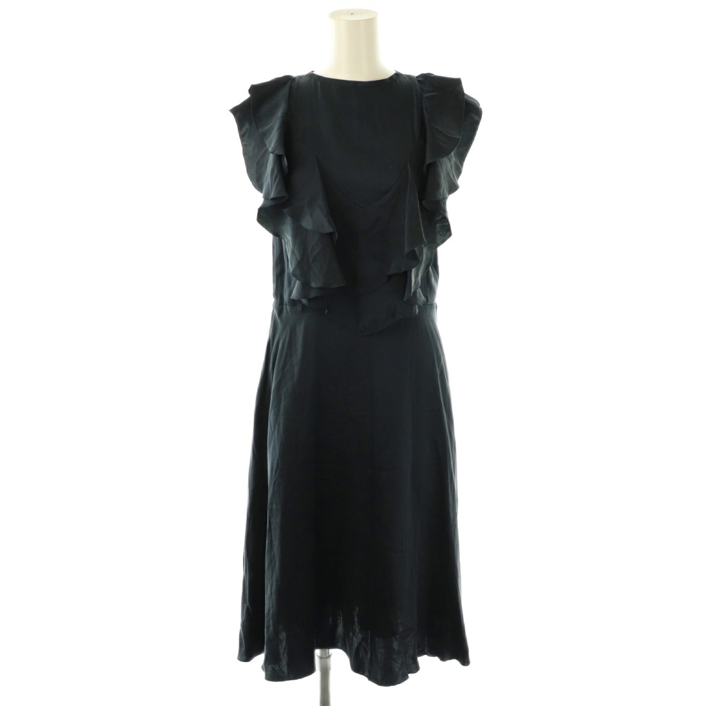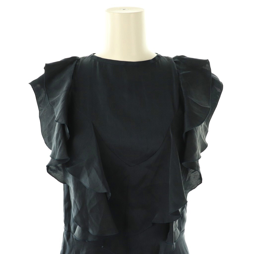 アナイ ANAYI フリルデザインシルクノースリーブワンピース ミモレ ロング 36 紺 ネイビー /AT ■OS ■SH レディース