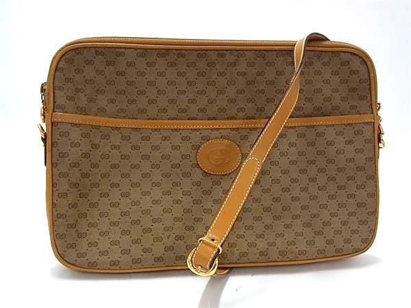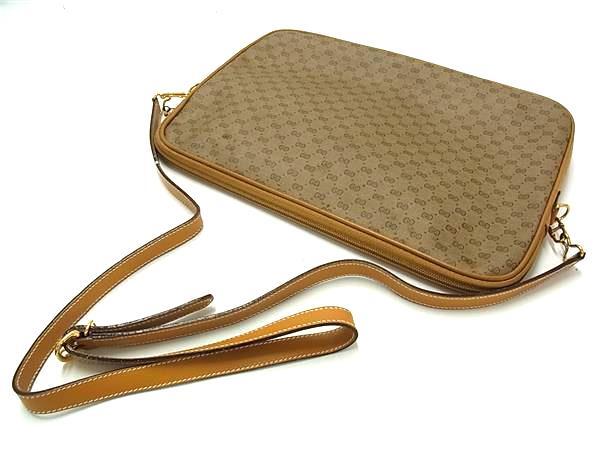 1円 GUCCI グッチ 004 89 0262 オールドグッチ ヴィンテージ マイクロGG PVC×レザー クロスボディ ショルダーバッグ ブラウン系 FV0686