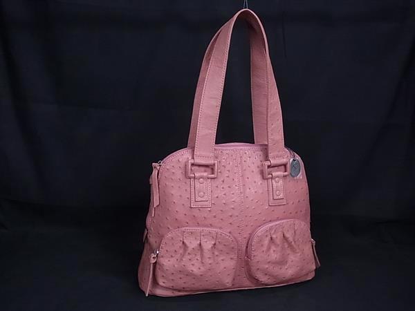 1円 ■極上■本物■JRA公認■美品■ ZAO ザオー オーストリッチ トートバッグ ショルダー 肩掛け レディース ピンク系 FR5048
