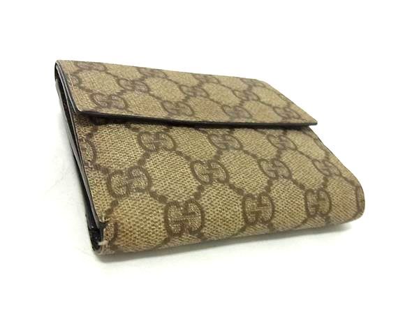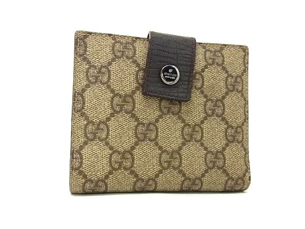 1円 GUCCI グッチ 115052 GG柄 PVC×レザー 二つ折り 財布 ウォレット 札入れ 小銭入れ レディース ブラウン系 FV1987