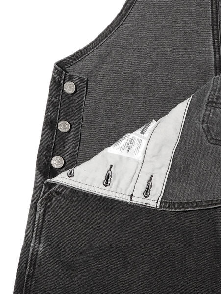 前面のビブにポケットをあしらい、調節可能なストラップを備えたこのオーバーオールはクラシック感満載です。