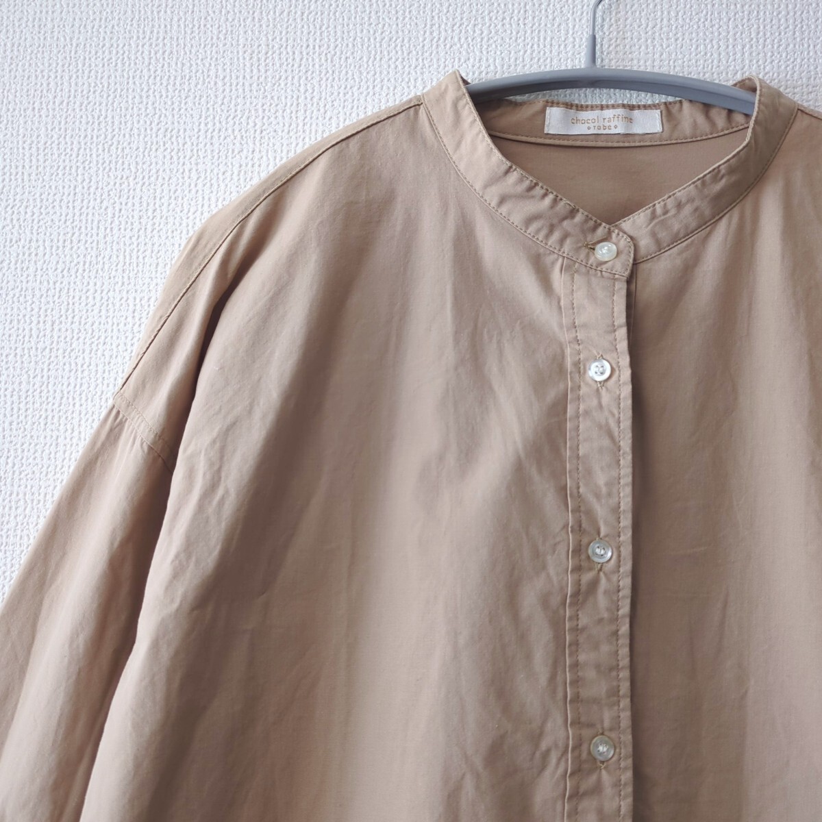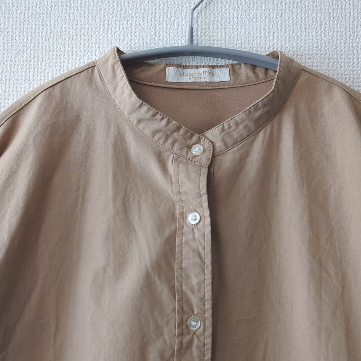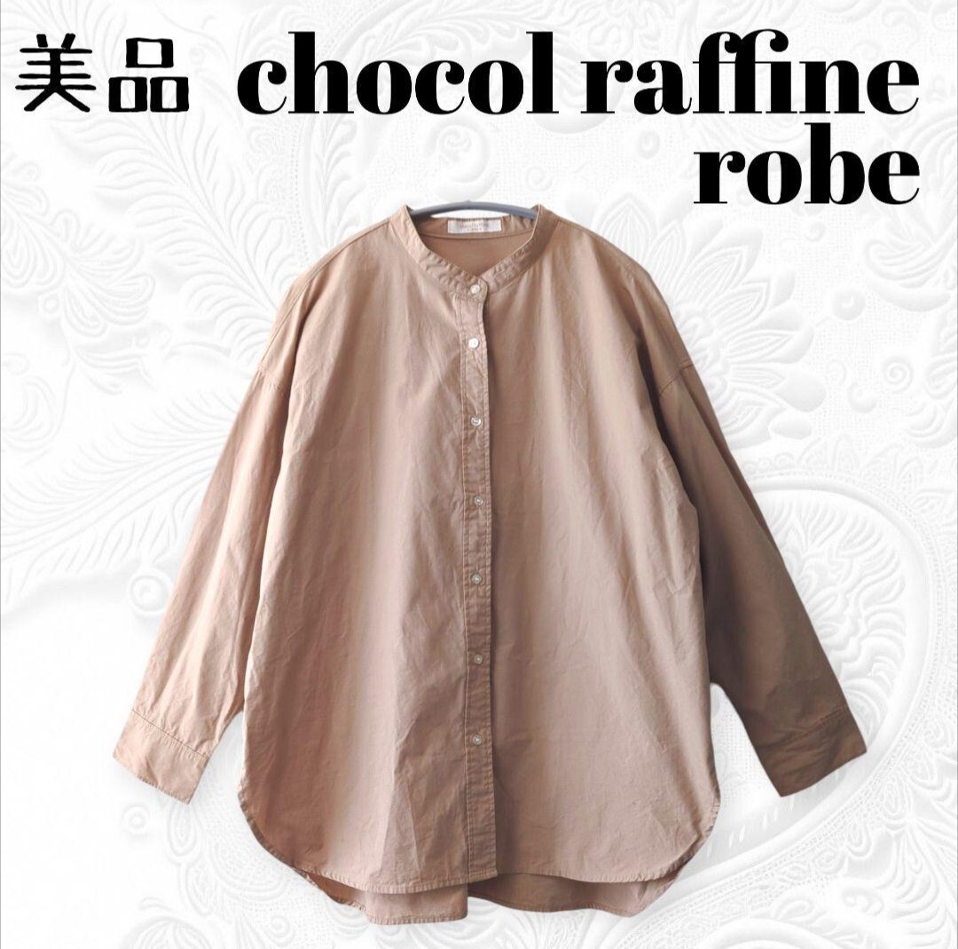 美品 chocol raffine robe ショコラフィネローブ オーバーサイズ バンドカラー長袖シャツ ベージュ ゆったり 大きめ