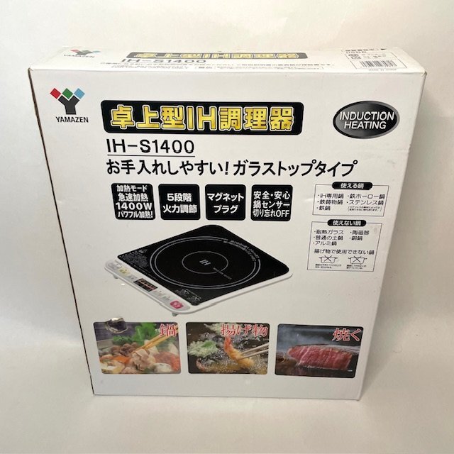 YAMAZEN 卓上型IH調理器 IH-S1400 クッキングヒーター 5段階調節 ガラス製 1人暮らし ホームパーティー 2015年製 加熱調理 揚げ物 HMY |