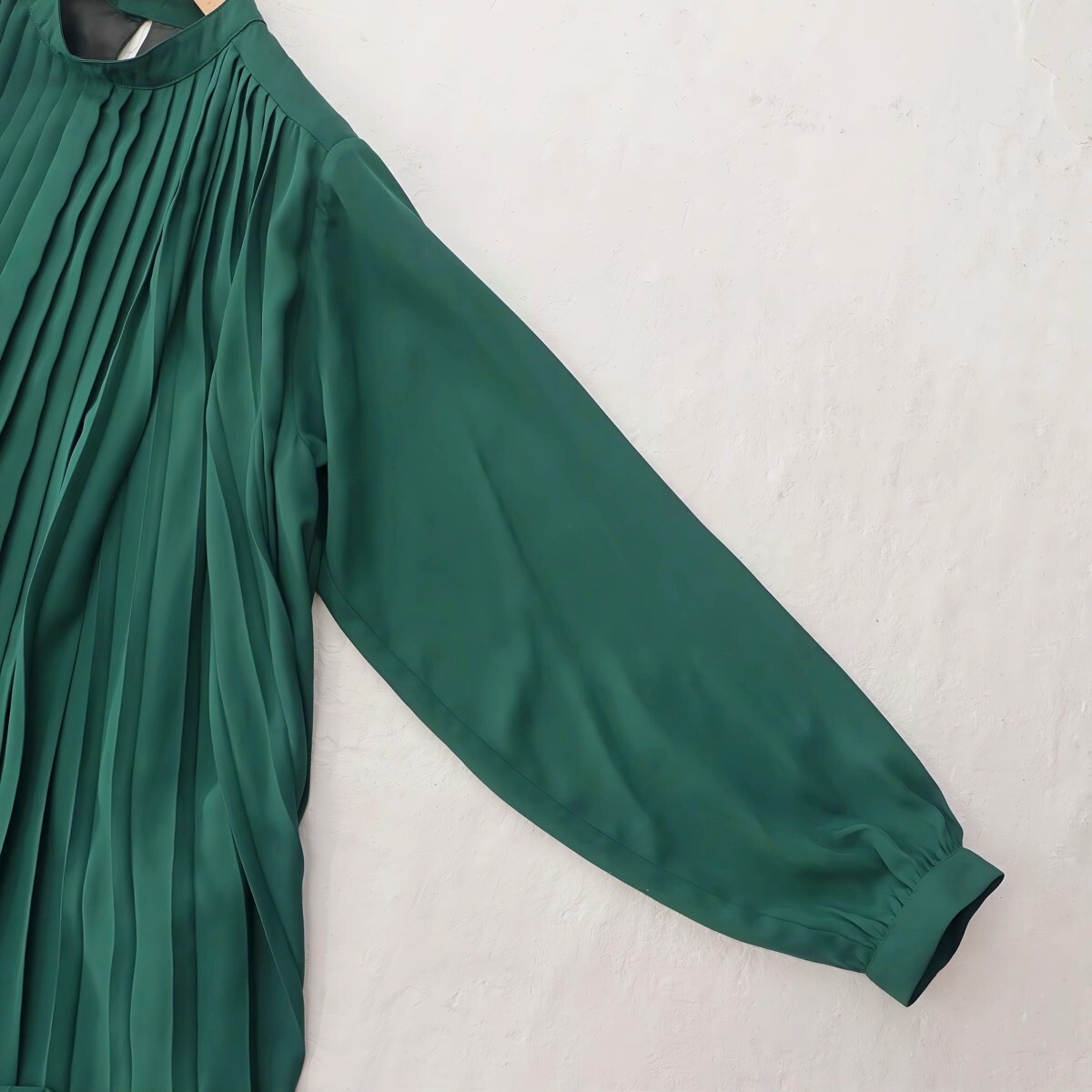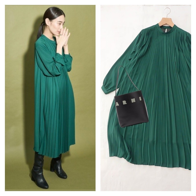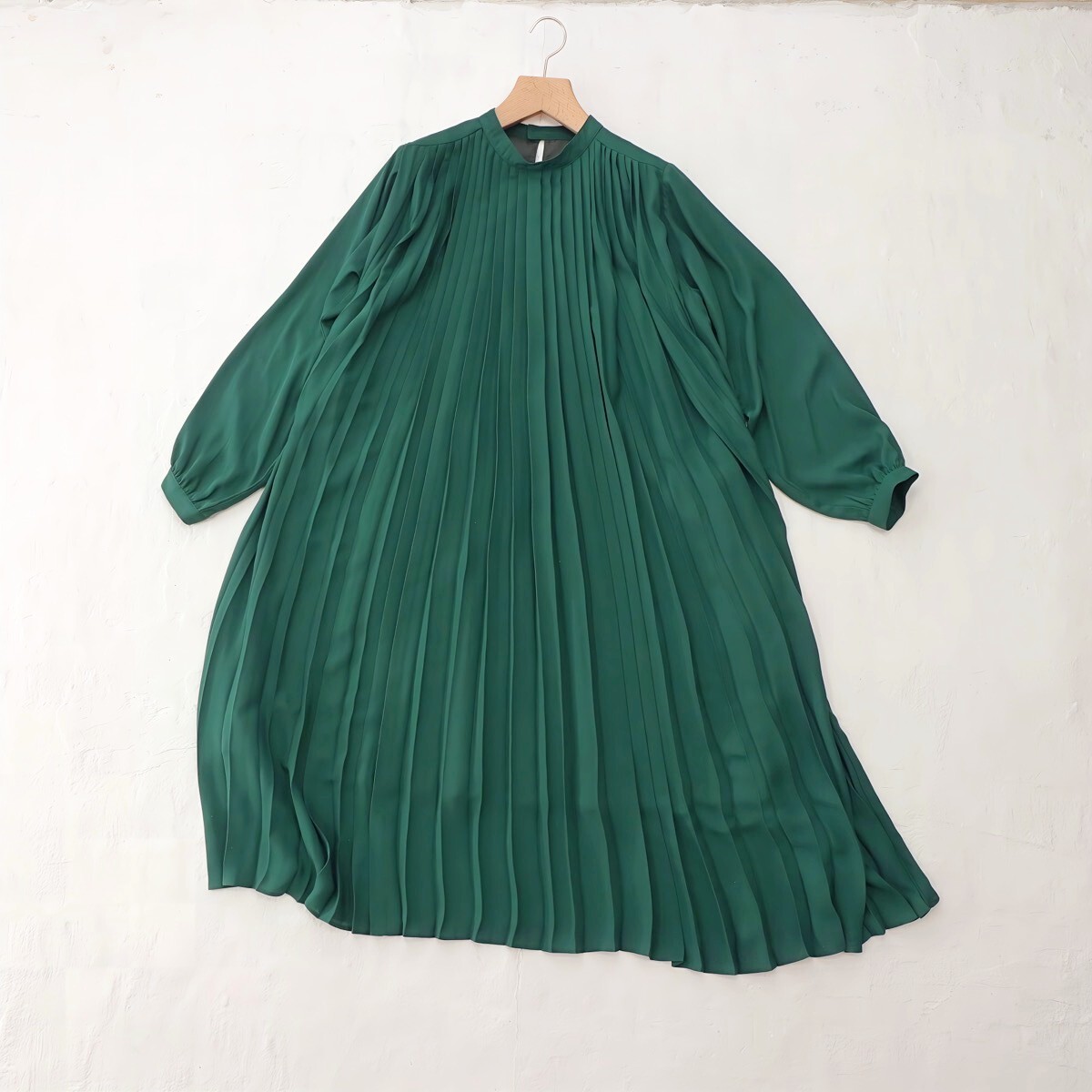 ・ワンピース全体にあしらわれたプリーツが、動くたびふわりと揺れる雰囲気あるデザインワンピースです。