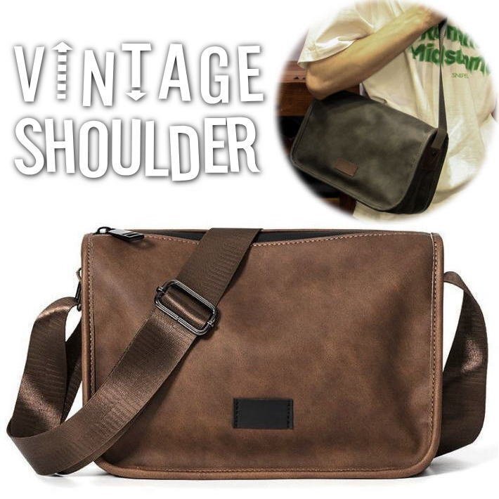 Vintage ショルダーバッグ メンズ レディース バッグ シンプル 撥水 通勤 通学 旅行 プレゼント 7987488 ブラウン 新品 1円 スタート