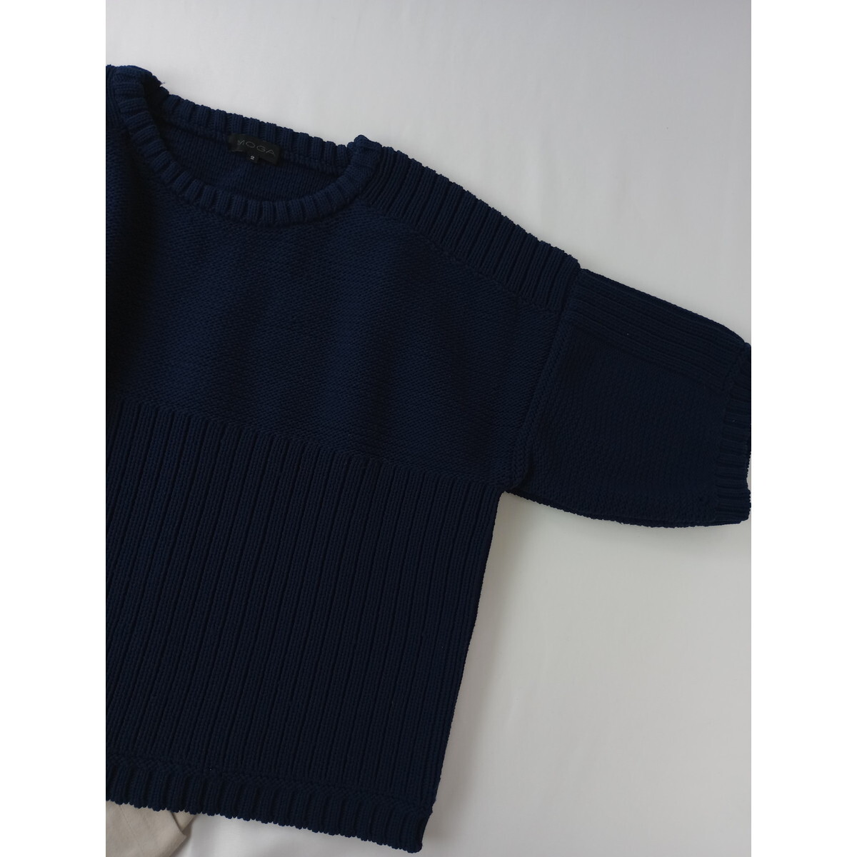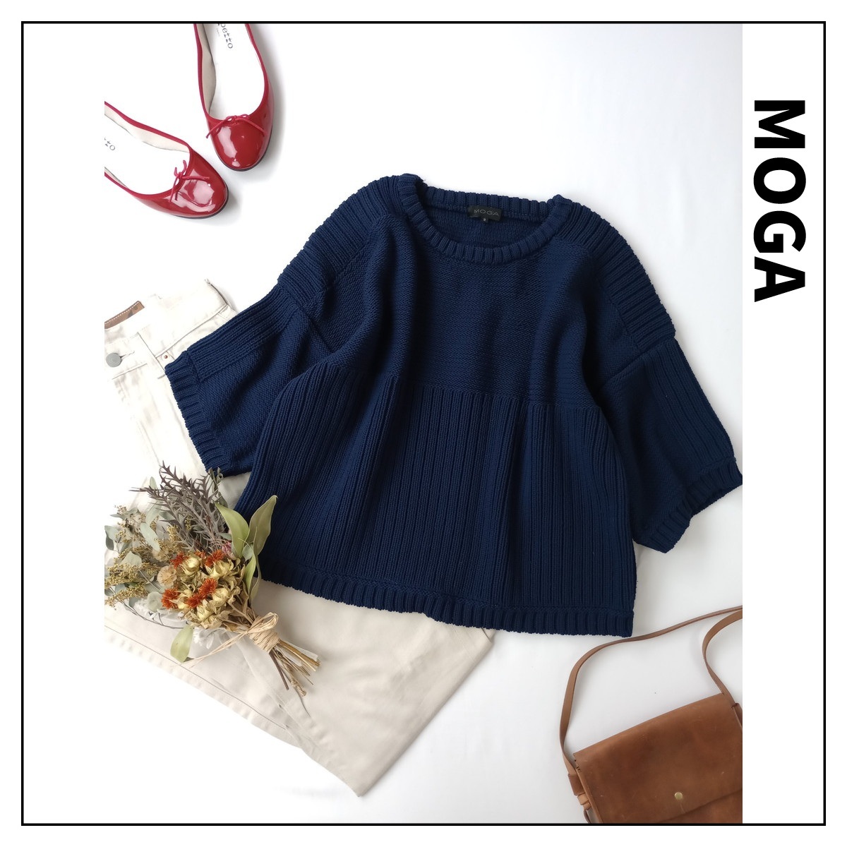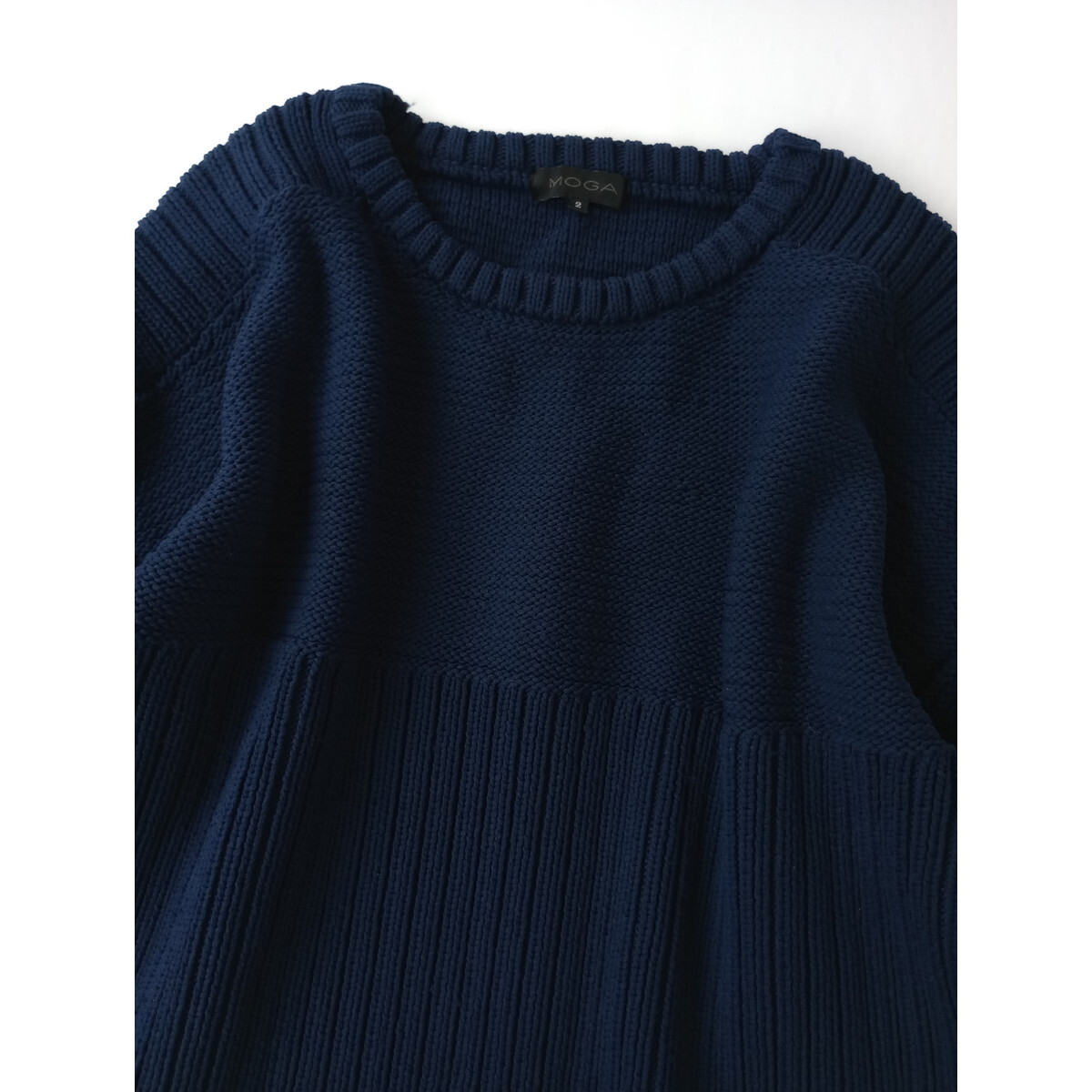 MOGA モガ「見て見て!今日のわたしはちょっと違う」リブ 切替 ナイロン ニット プルオーバー セーター 2 ネイビー(30M+4475)☆