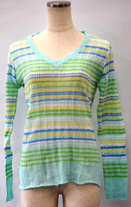 ◆faded gloryレディースサマーニット 【カラー】 サックス 【サイズ】 SMALL 4/6 身幅 約43cm.着丈 約57cm.袖丈 約58cm 【素材】cotton45%.ramie55% | |