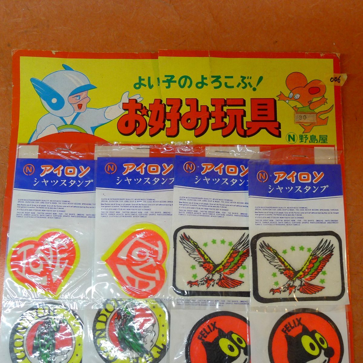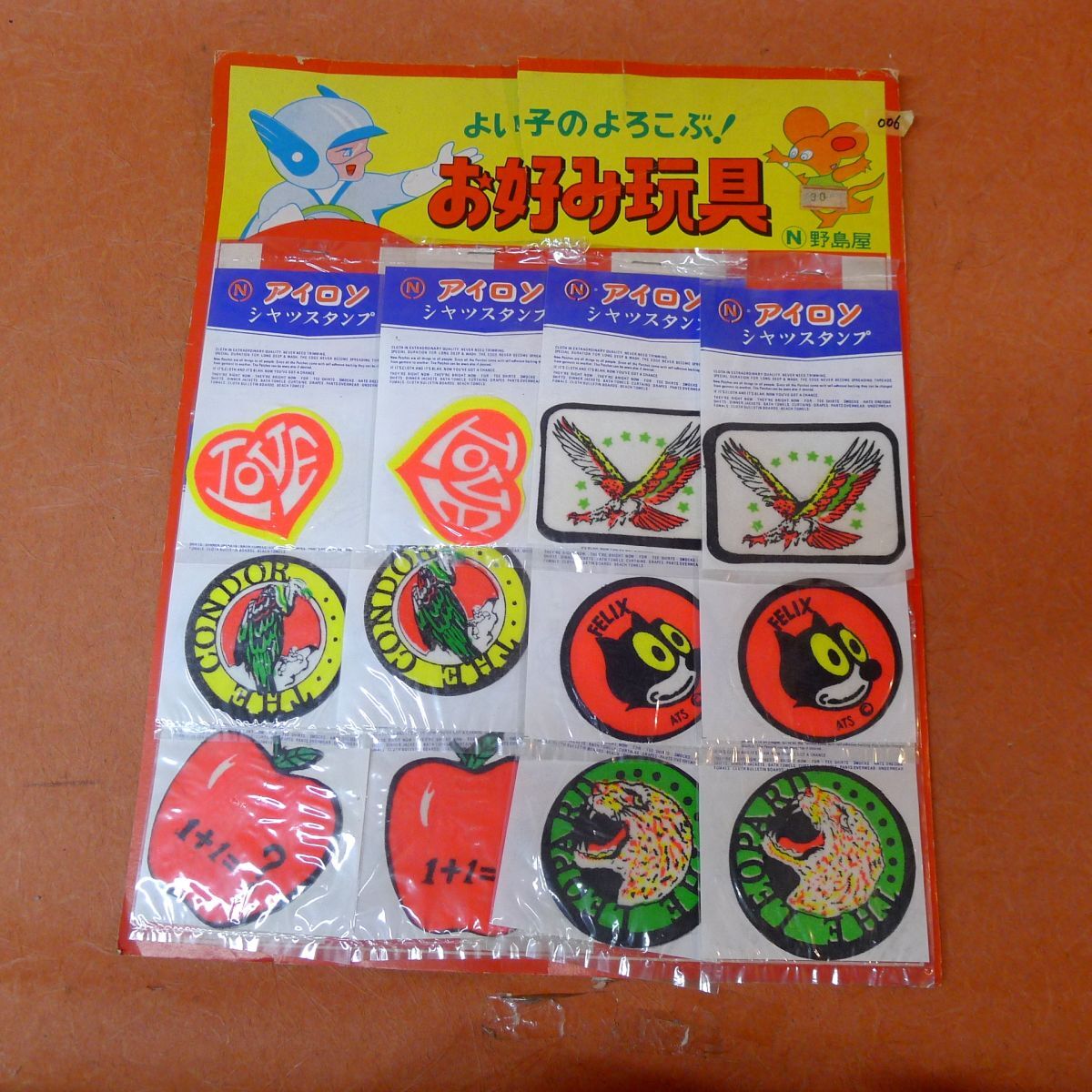 商品名・駄菓子屋さん 台紙玩具 シャツスタンプ 野島屋 当時物 昭和レトロ デッドストック 6種12枚