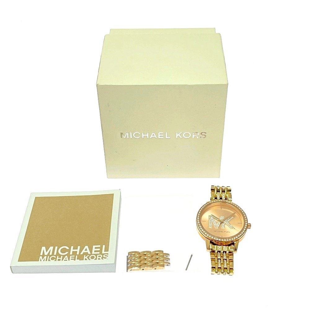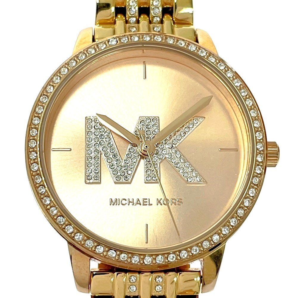 【1円スタート】【箱付き】MICHAEL KORS マイケルコース MK-4372 ラインストーン GP×SS ピンク系文字盤 QZ レディース腕時計 484031