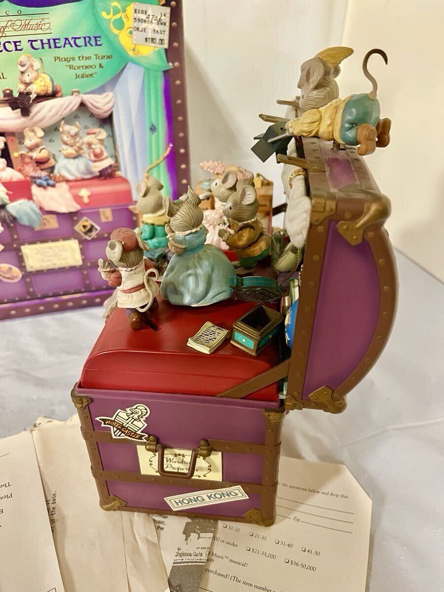 ネズミたちが舞台で劇を演じる豪華なインテリアアイテムで、本来はライト点灯・多彩な動き・オルゴール曲「Romeo & Juliet」が楽しめます。