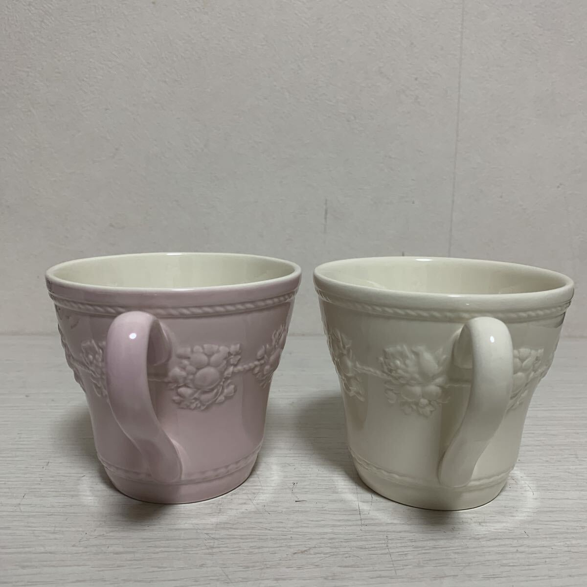 WEDGWOOD ウェッジウッド クイーンズウェア コレクション ペア マグカップ ホワイト ピンク 箱あり