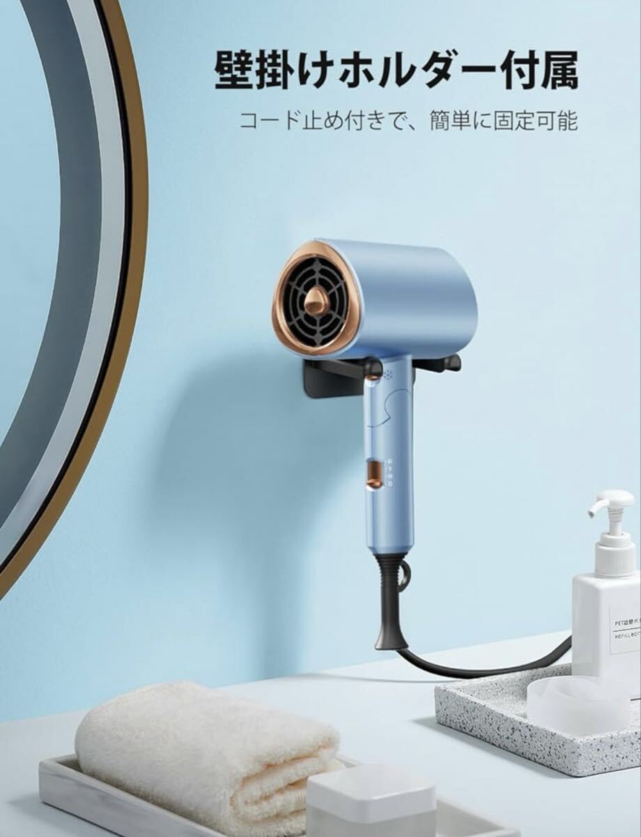 【壁掛け式ホルダー付属】ドライヤー用のホルダーが付属され、使うときにサッと取りだせて、かさばりがちなコードもスッキリと整理することができます。万