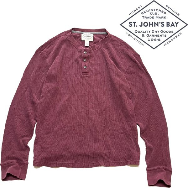 1点物◆セントジョンズベイSJBヘンリーネック長袖サーマルTシャツ古着メンズXLレディースOKアメカジ90sストリートスポーツスウェット362068