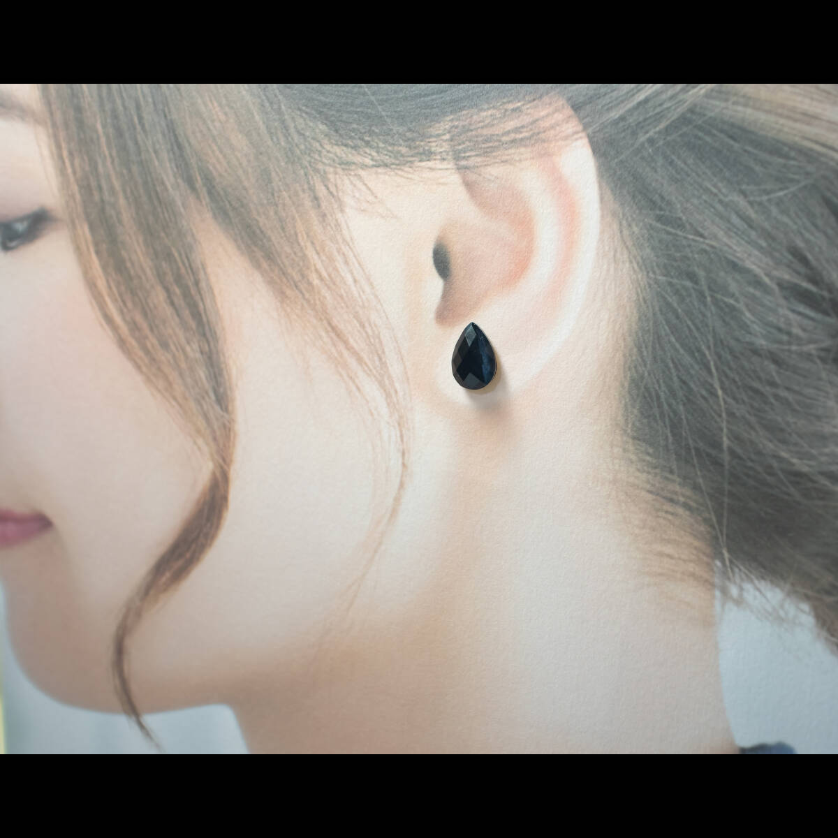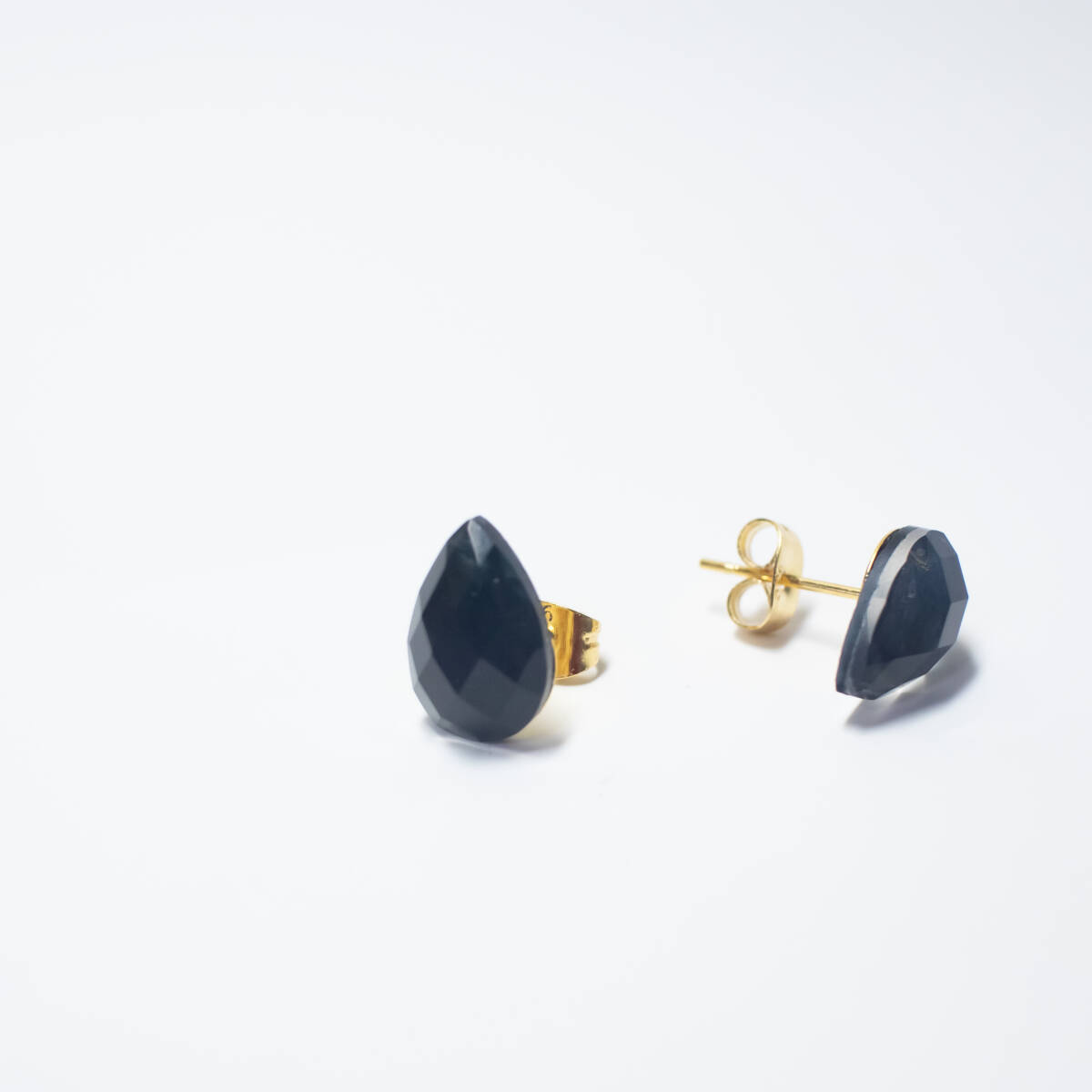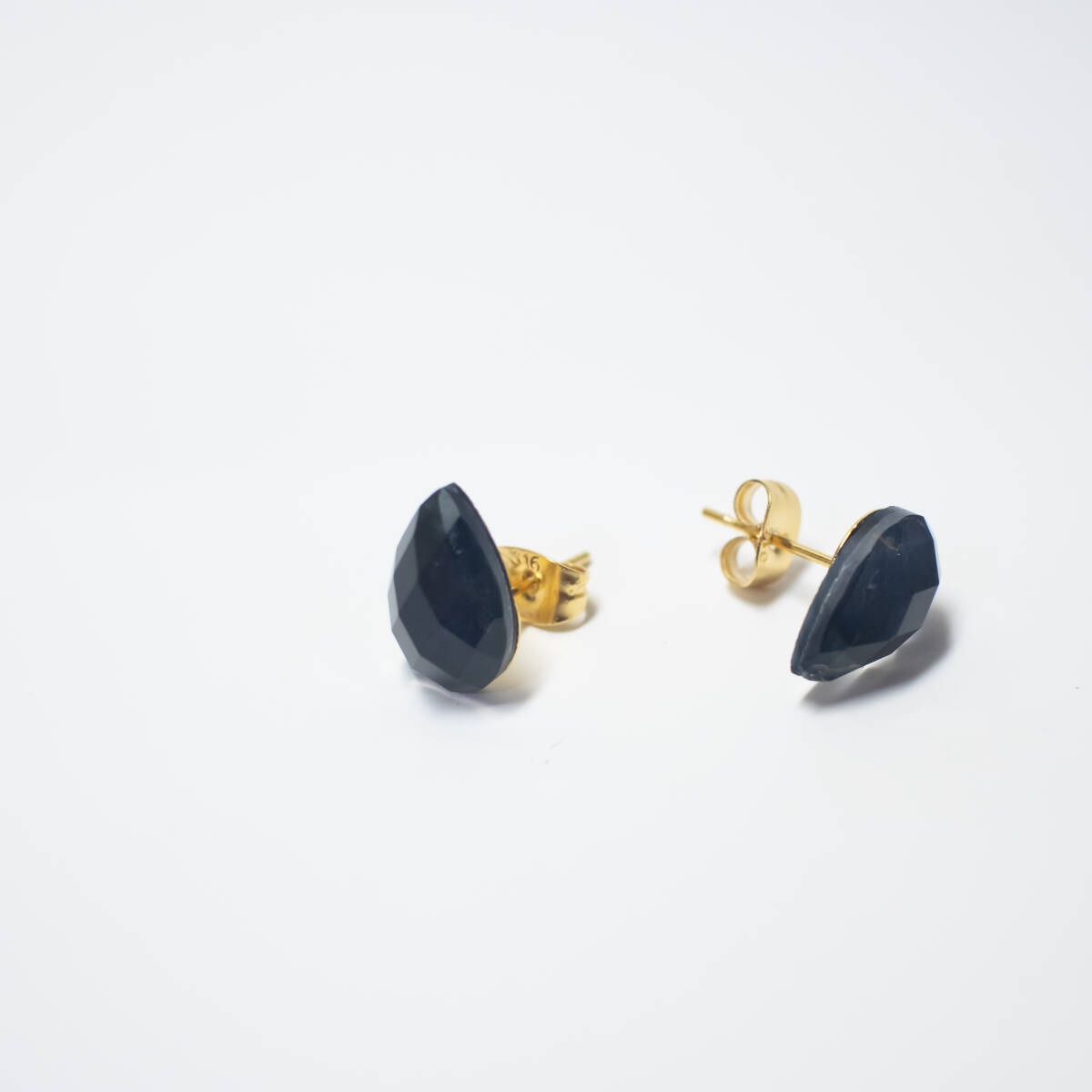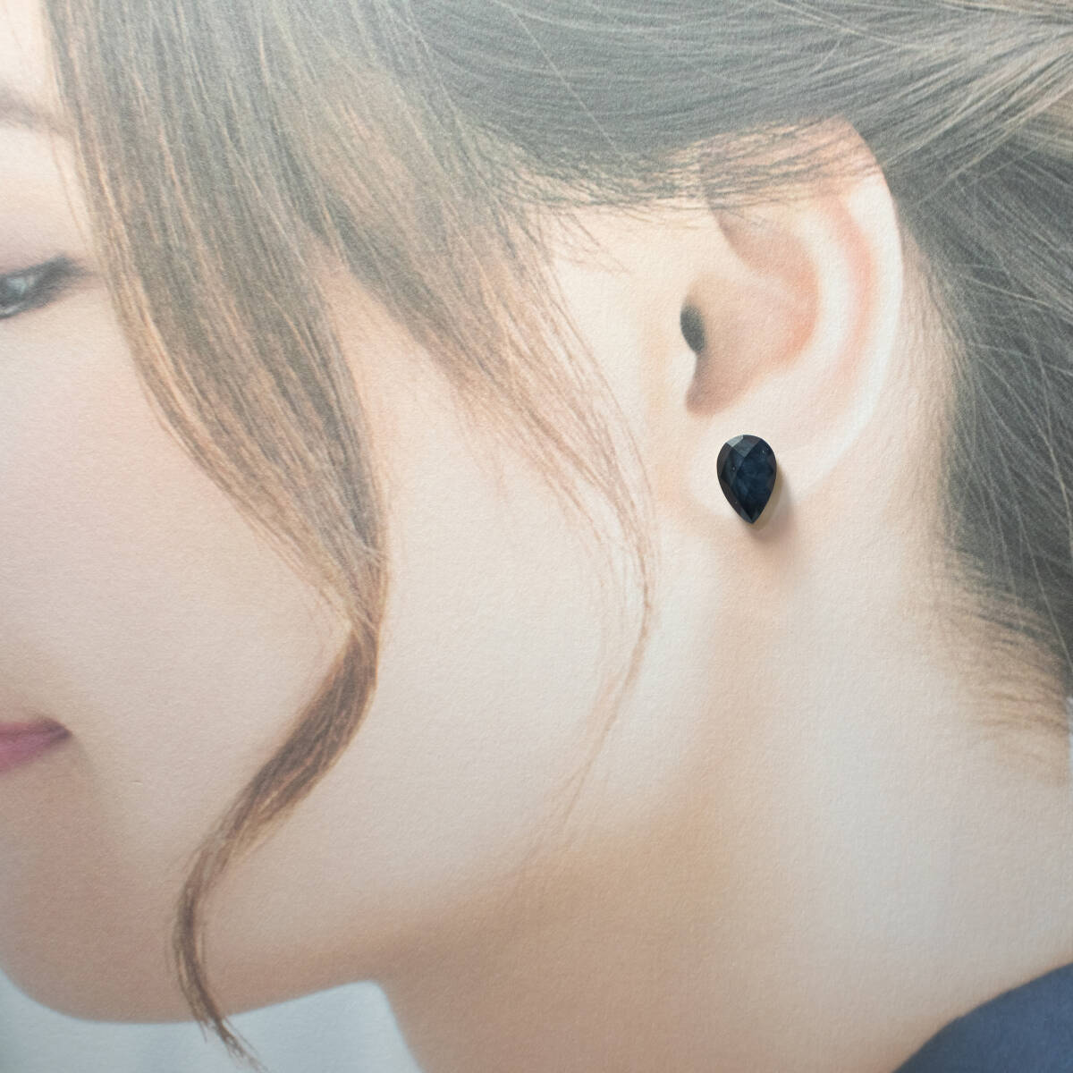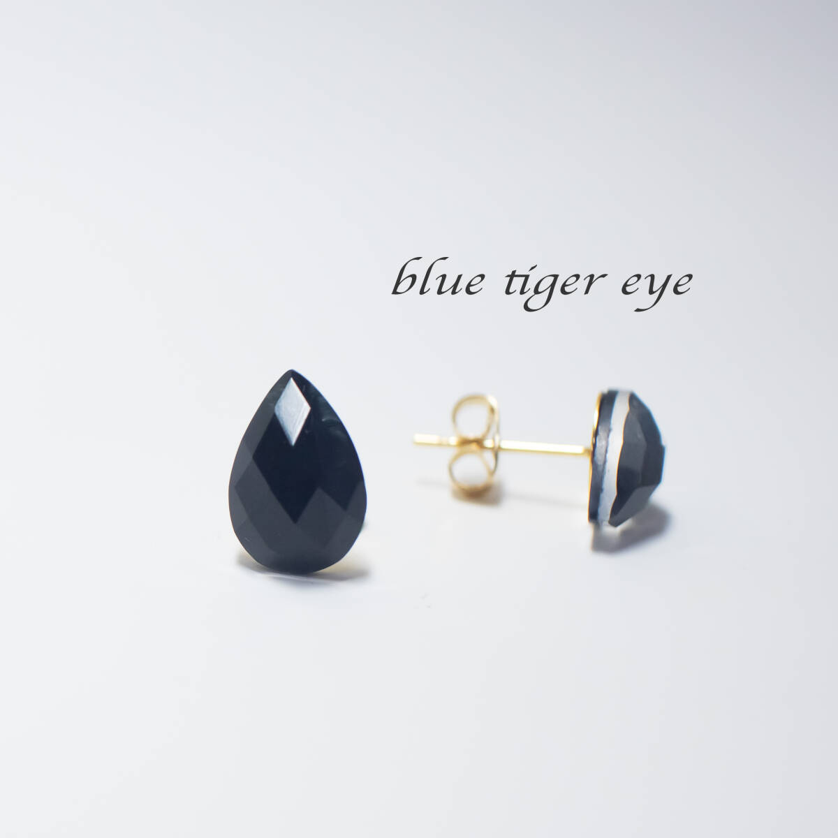深みのあるブルータイガーアイに透明感のあるクリスタルを重ねた、ダブレットタイプのカボションピアスです。